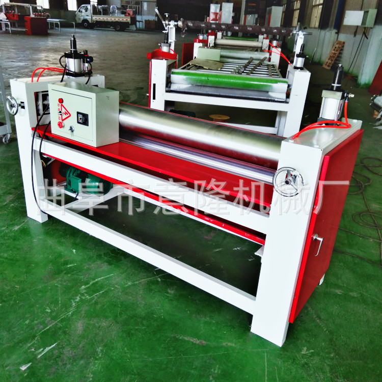 我厂的涂胶机分四轮双面上胶和单面涂胶机,橡胶制作的胶辊结实耐用。结构紧凑、结构好用、维护方便、涂胶均匀、效率高、省胶省人工、节约生产成本。本机采用滚筒式进料,稳定性能强,易操作,板材加工面平整光华深受用户喜爱。适用于生产胶合板、细木工板、竹胶板或人造板的二次贴面。