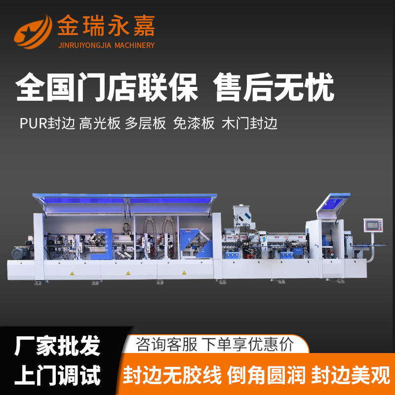 Máy dán cạnh tự động Jidong máy móc chế biến gỗ bảng điều khiển đồ nội thất PUR tấm ván có độ bóng cao bảng điều khiển cửa gỗ truyền nhiệt máy dán cạnh