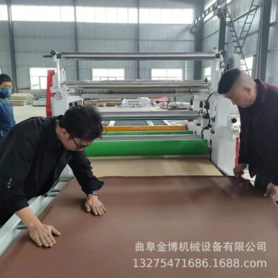 气动放卷、纠偏放斜、磁粉张力、速度可调、静电消除、除尘预加热、涂胶、气动热压及冷压。