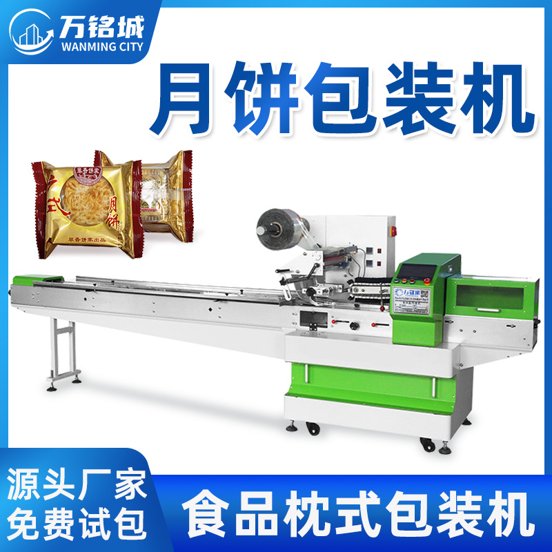 Máy đóng gói bánh trung thu có khay tráng miệng máy đóng gói màng bao tự động máy đóng gói gối thực phẩm bánh ngọt