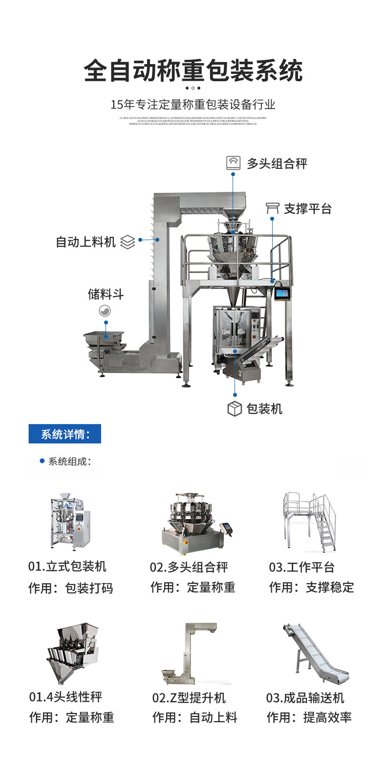 Máy đóng gói cân dọc nhiều đầu thực phẩm các loại hạt và ngũ cốc cấp túi tự động máy đóng gói hạt quy mô vi mô kết hợp
