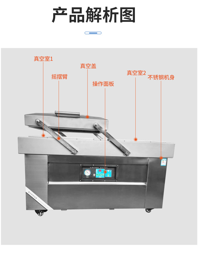 Máy đóng gói chân không buồng đôi Máy đóng gói chân không thực phẩm buồng đôi 600 Máy đóng gói chân không loại phẳng máy hàn kín
