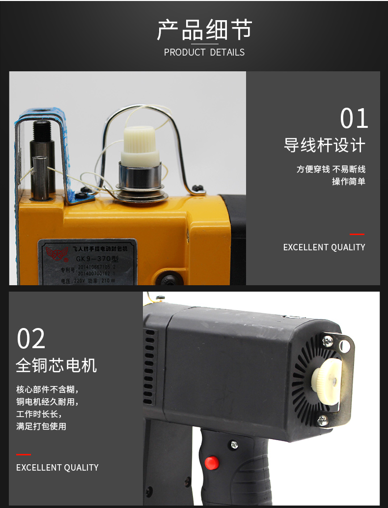 Máy đóng gói điện cầm tay Flying Man GK9-370 Túi dệt Túi giấy Kraft Máy khâu túi da rắn Máy đóng gói