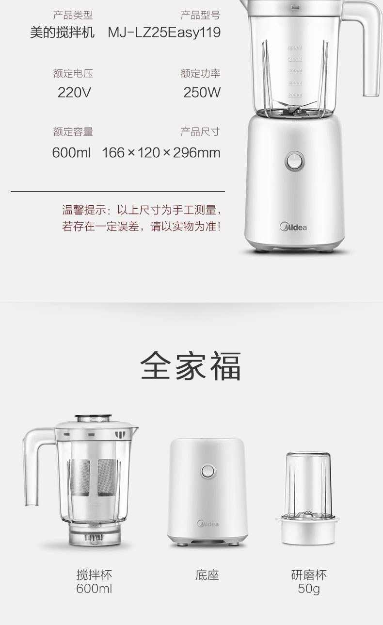| 包装清单: | 说明书*1、主机座*1、搅拌杯*1、研磨杯*1、滤网*1、小量杯*1 |