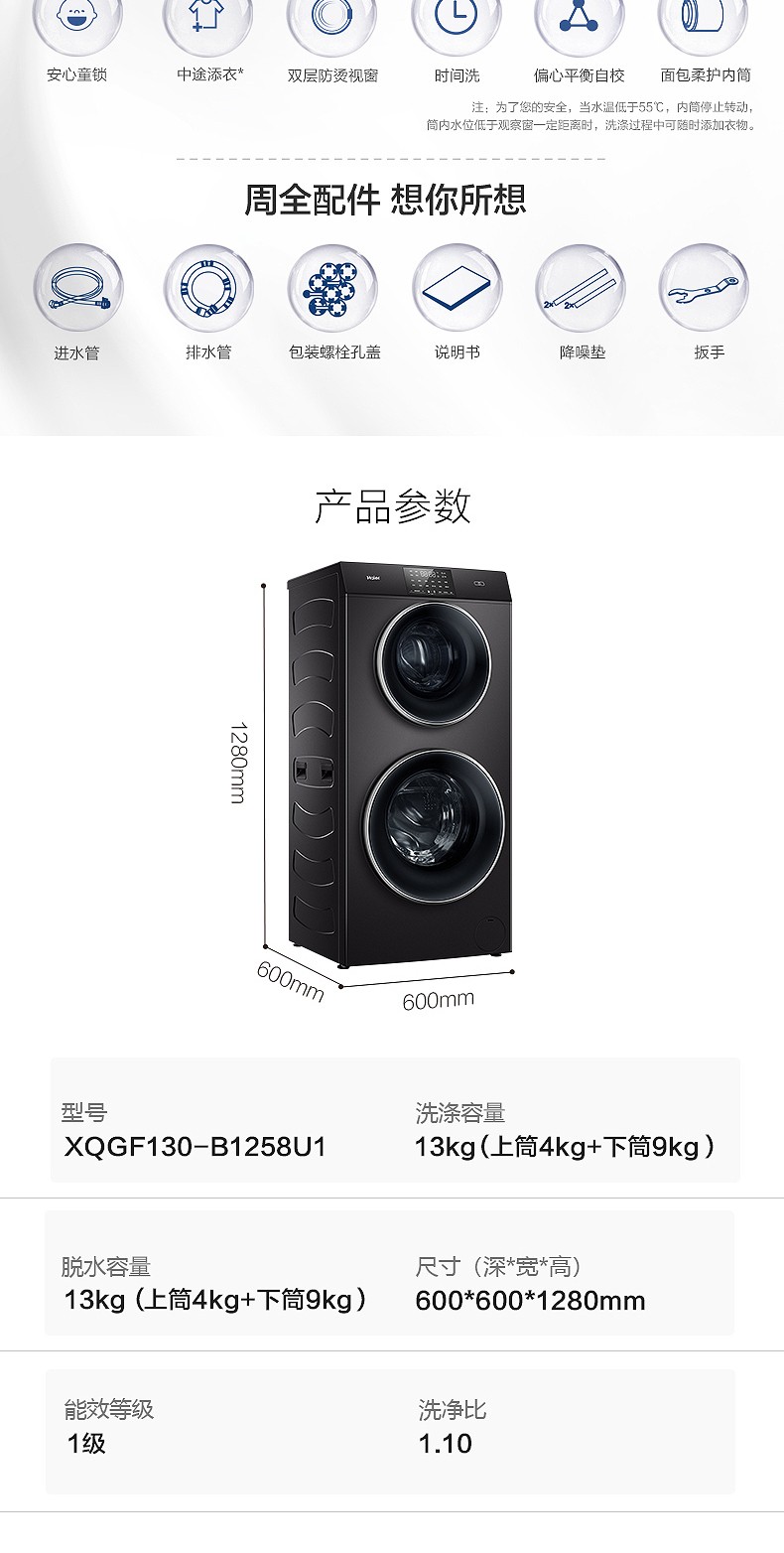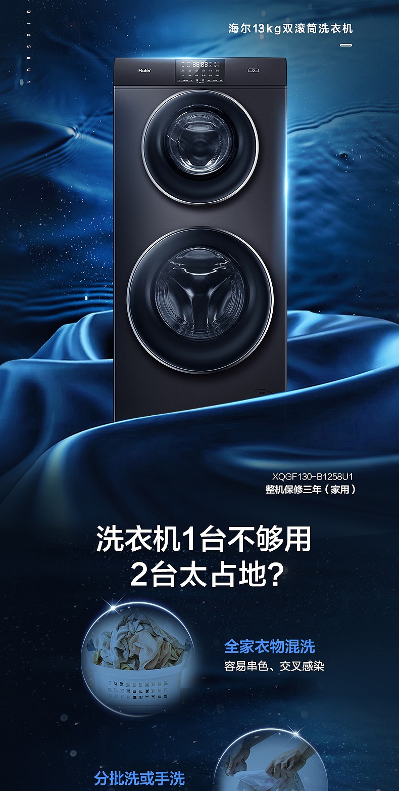 Máy giặt Haier mẹ-con 13 kg ngăn đôi lồng giặt hoàn toàn tự động XQGF130-B1258U1