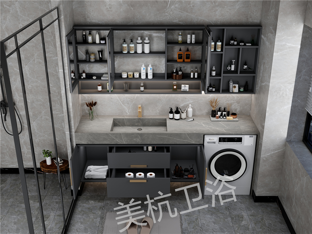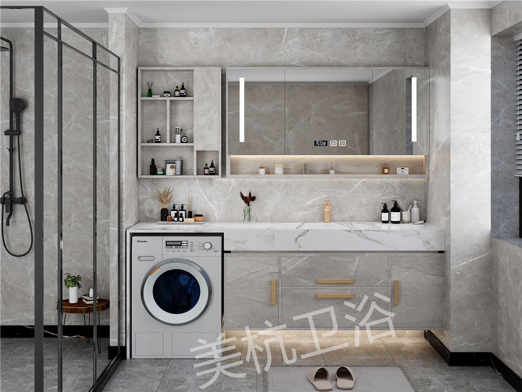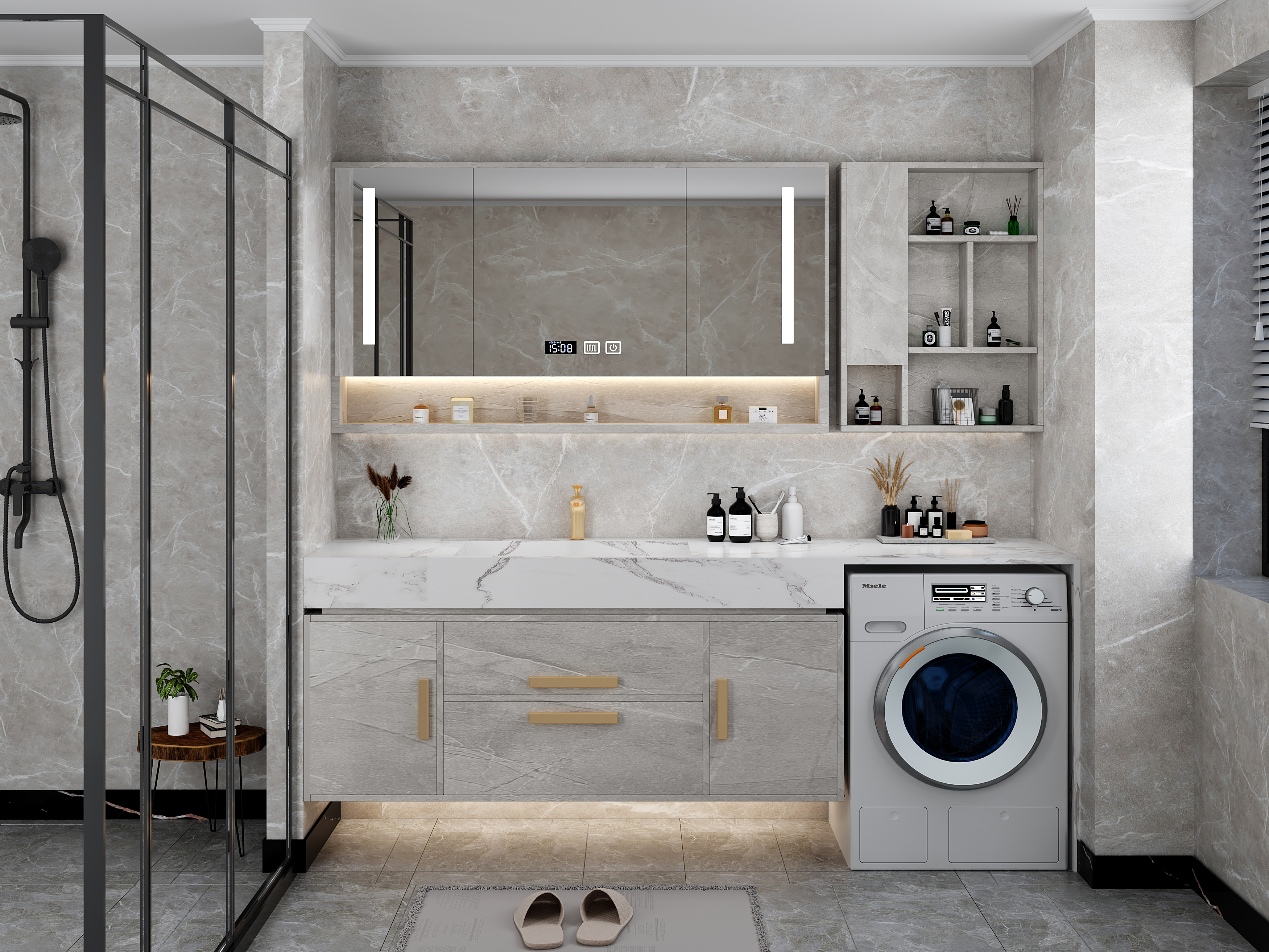 Máy giặt Tủ tích hợp Chậu rửa bằng đá cẩm thạch Tủ phòng tắm đơn giản Kết hợp Phòng tắm bằng gỗ rắn Chậu rửa thông minh