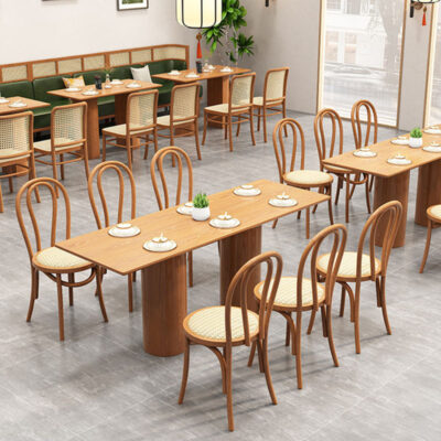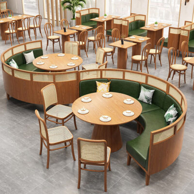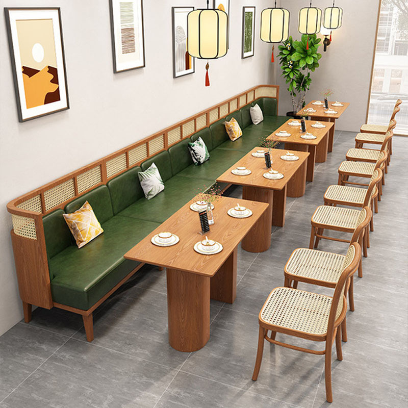Mây gỗ rắn thẻ ghế sofa chuỗi nhà hàng chủ đề nhà hàng nhà hàng bàn ghế kết hợp ghế thẻ vòng cung hình bán nguyệt