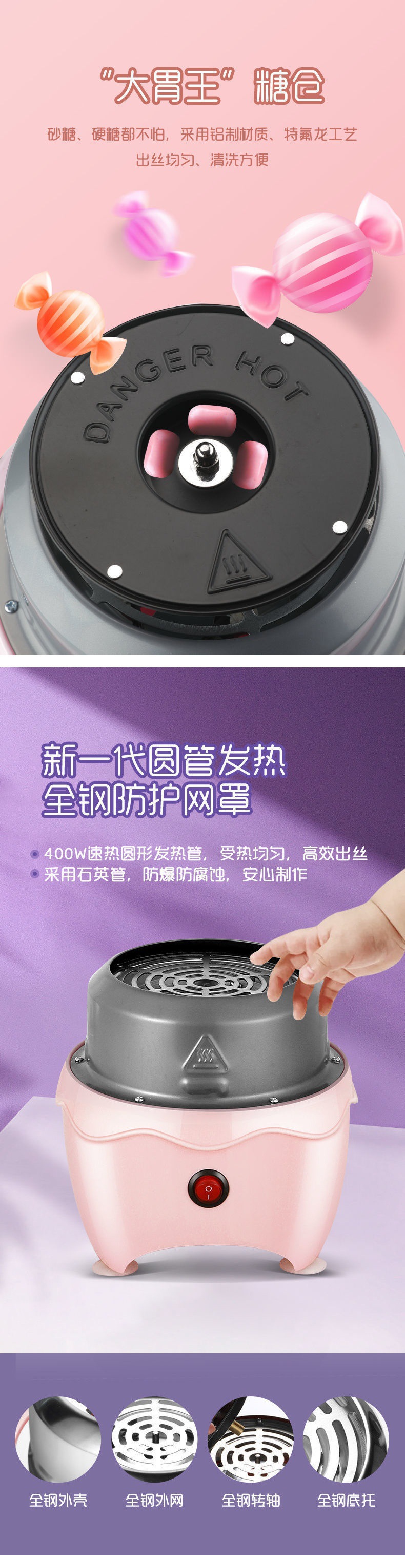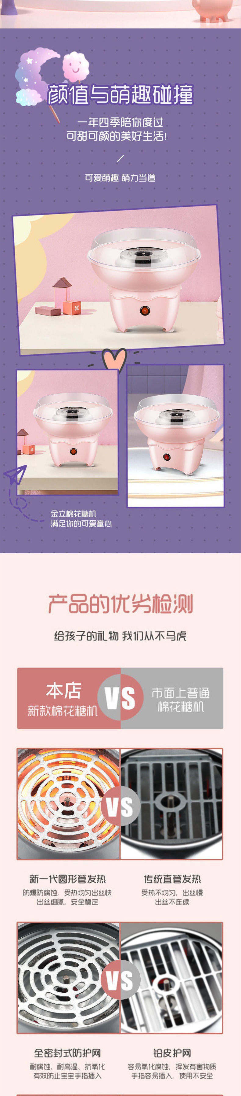 Máy kẹo bông trẻ em hộ gia đình làm kẹo bông máy sản xuất thương mại mini lạ mắt màu đường nhà sản xuất AliExpress