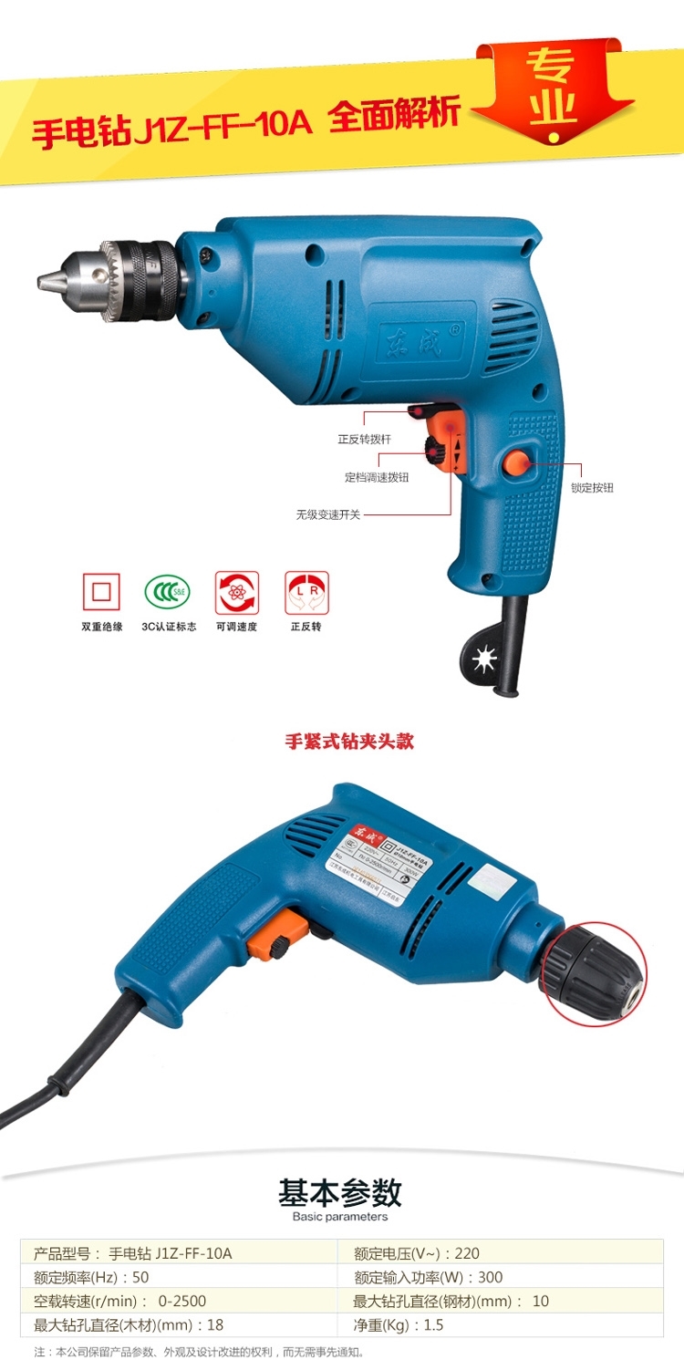 Máy khoan điện Đông Thành J1Z-FF-10A dụng cụ điện cầm tay máy khoan điện điều khiển tốc độ khẩu súng lục khoan 10mm 300W truyền thống