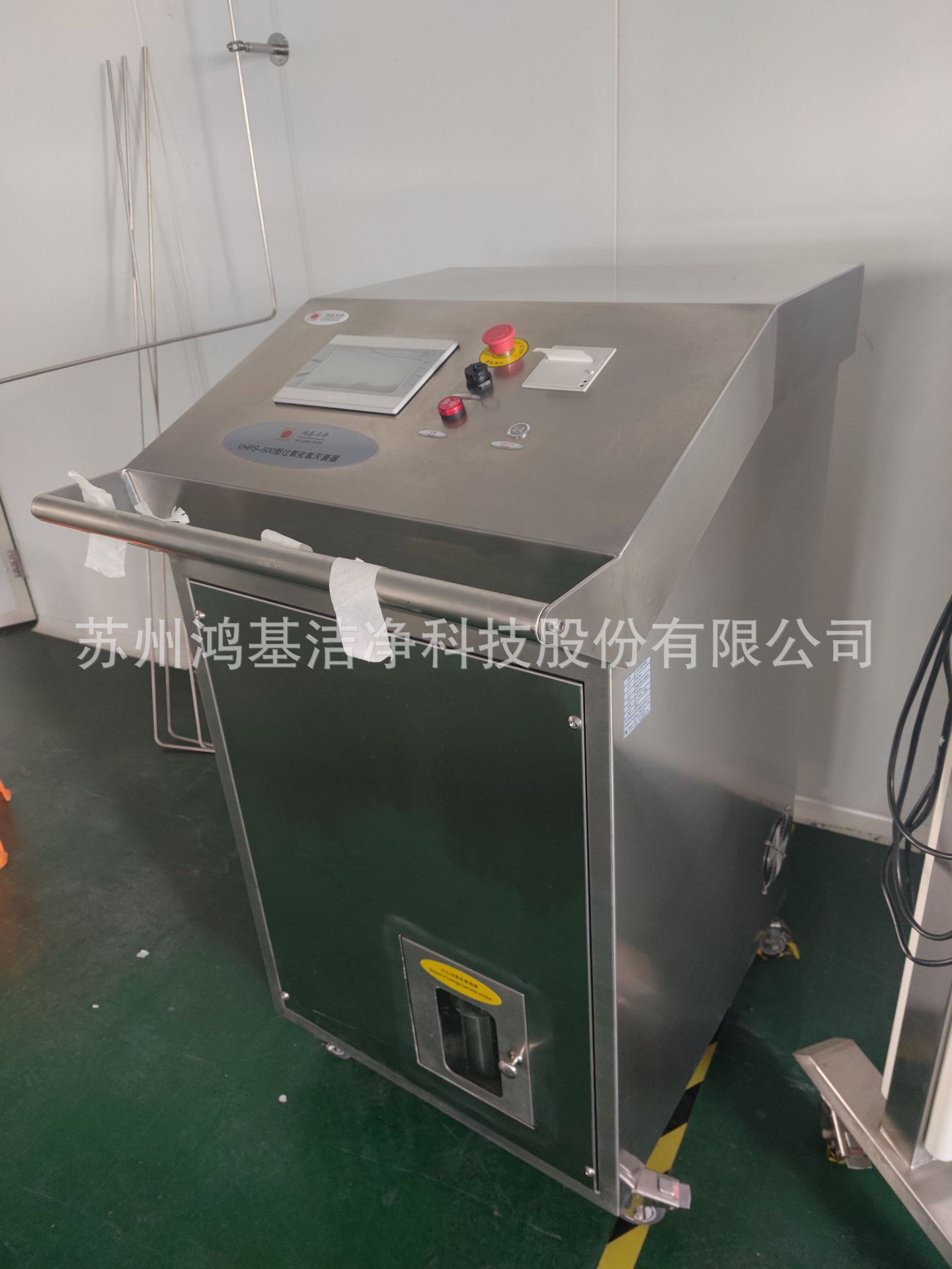 - 汽化过氧化氢灭菌器是将浓度大于30%的H2O2溶液(即双氧水)通过汽化器形成过氧化氢蒸汽气溶胶,通过防腐风机输送到待灭菌的密闭空间进行生物除污的设备。灭菌系统包括汽化器,风机,温湿度传感器,过氧化氢浓度传感器,PLC监控系统,切换电磁阀,过氧化氢除残留过滤器,微型打印机,等等几部分组成