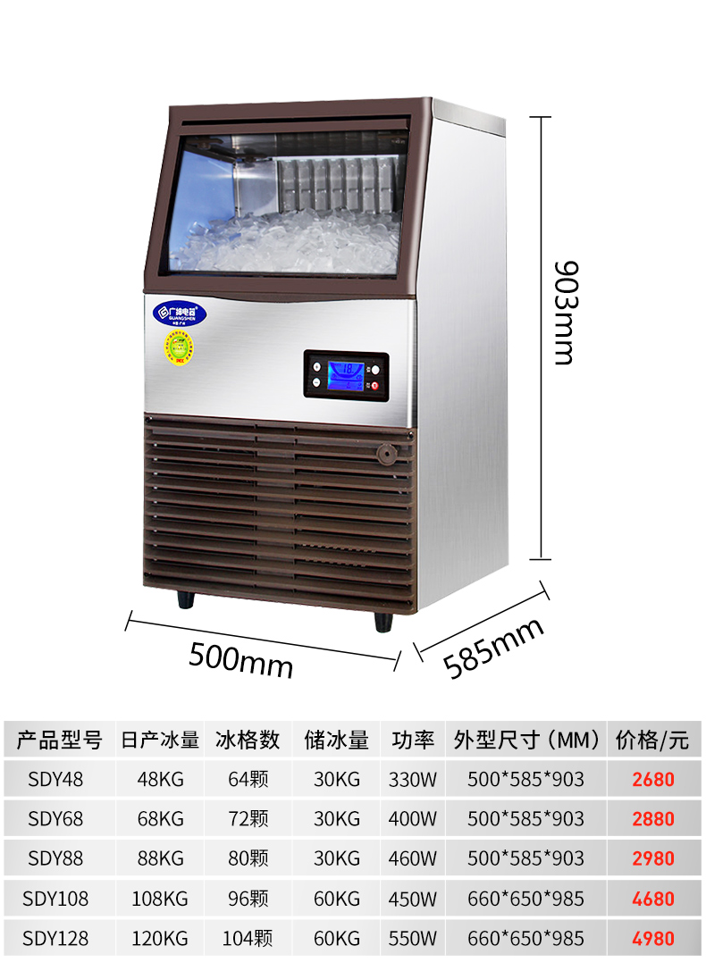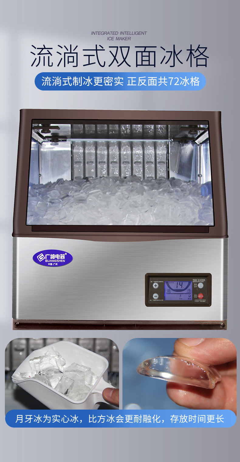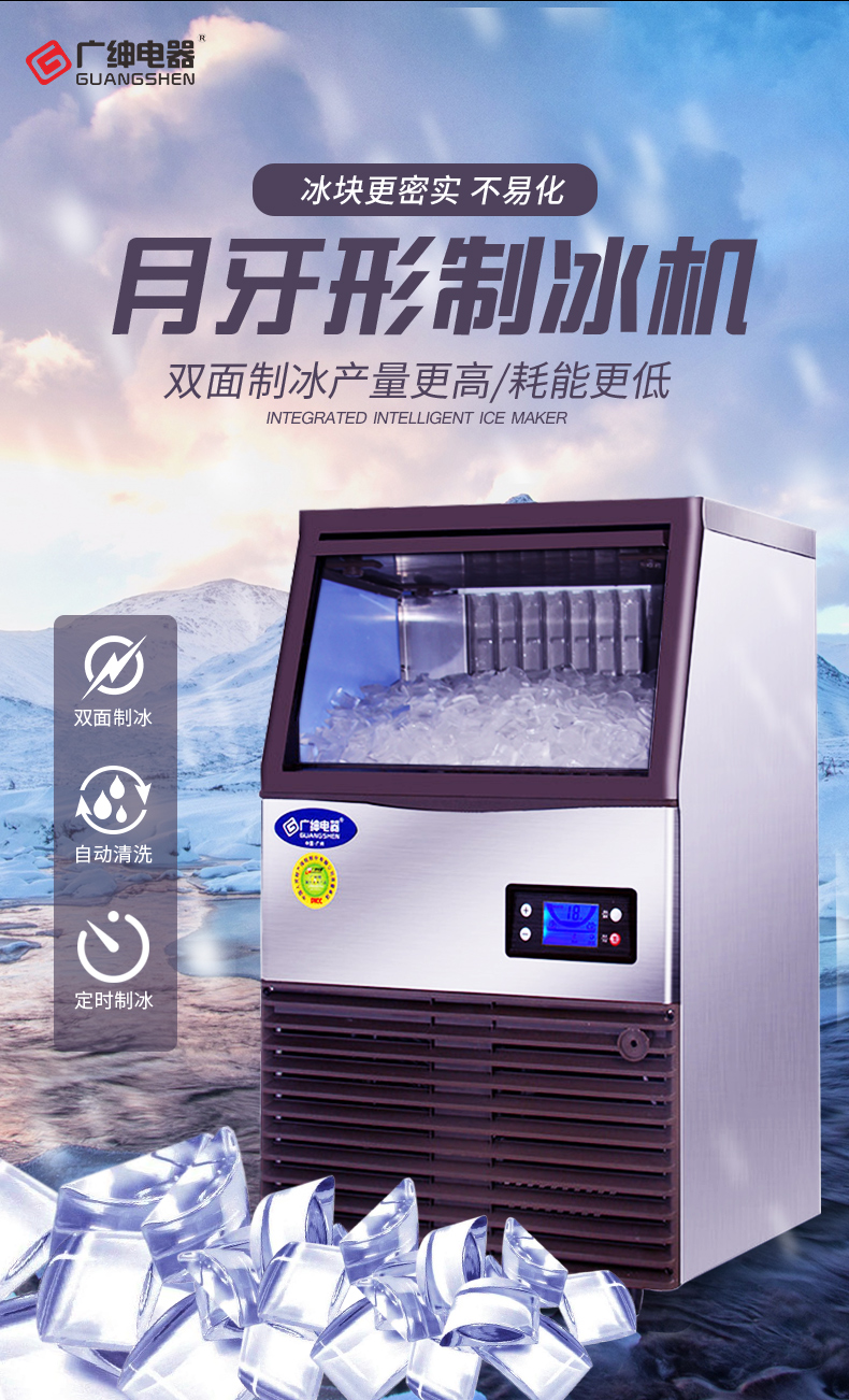 Máy làm đá Guangshen cửa hàng trà sữa thương mại nhỏ mini khối lập phương lưỡi liềm máy làm đá nhanh tự động làm mát không khí