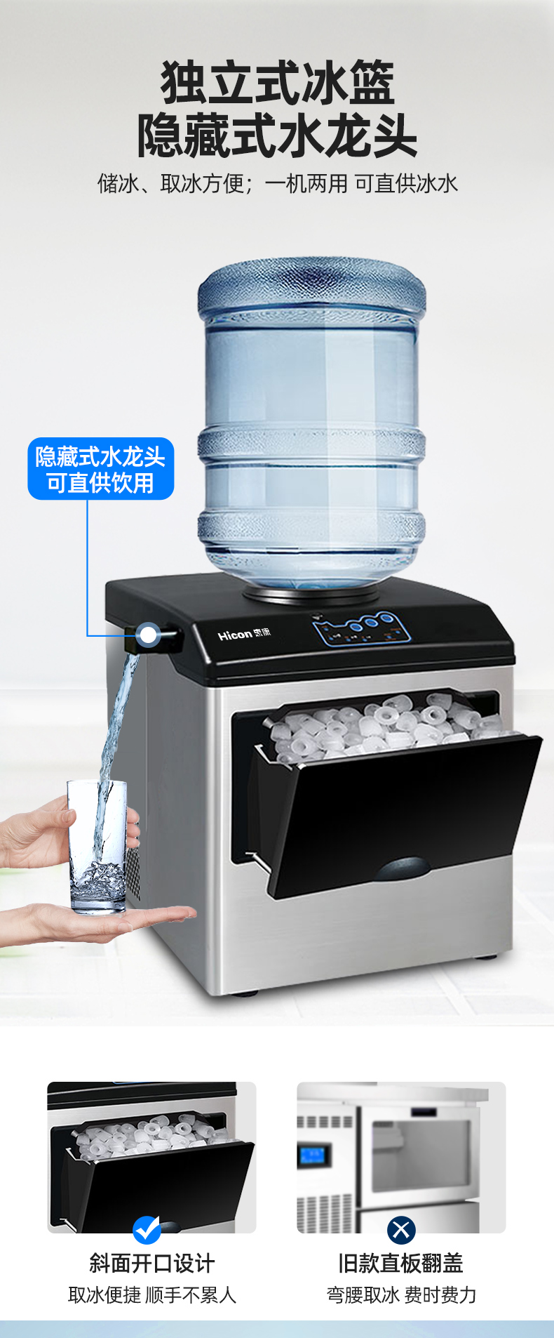 Máy làm đá Wellcome gia đình và thương mại sử dụng kép 30kg nước đóng chai nhỏ để bàn Máy làm đá viên đa chức năng Máy làm đá viên