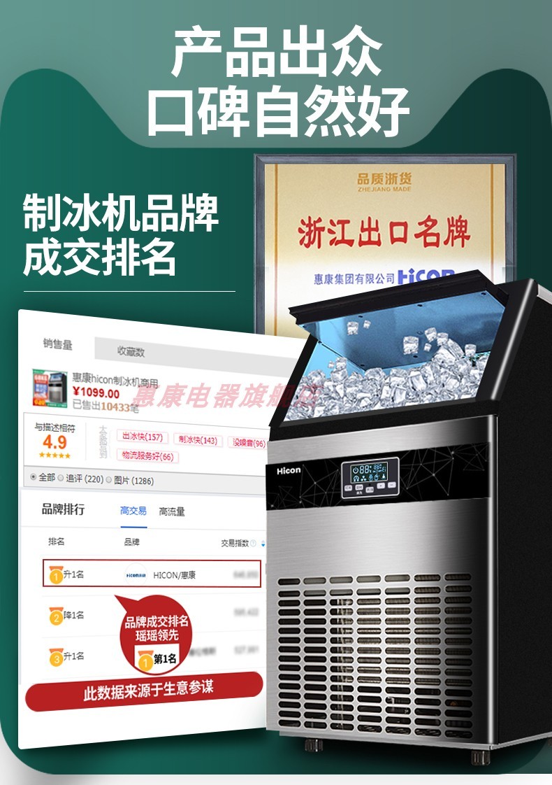 Máy làm đá Wellcome quán trà sữa công suất lớn 68/80/100kg Máy làm đá viên tự động công suất lớn