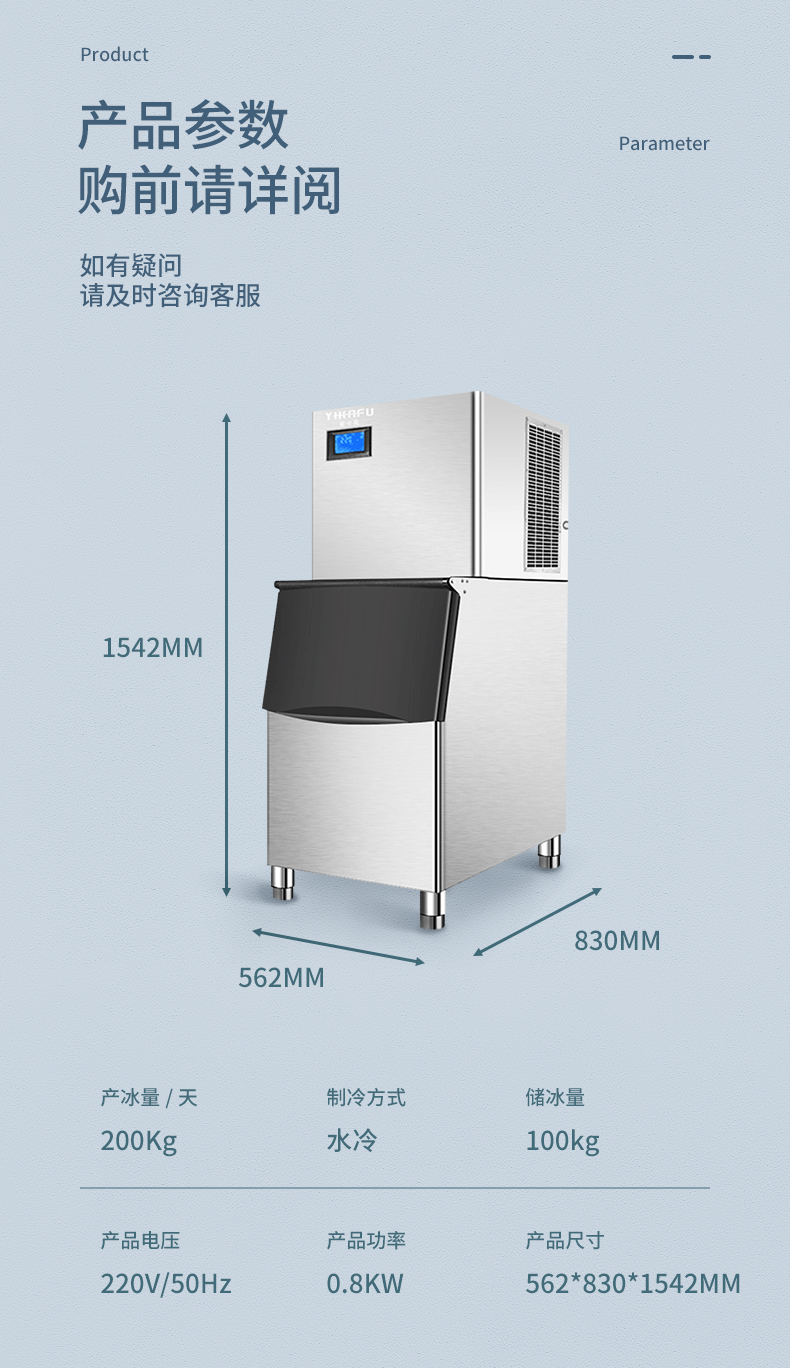 Máy làm đá Yikafu cửa hàng trà sữa thương mại 200 kg 350 pound quầy bar khách sạn lớn vuông làm mát bằng nước
