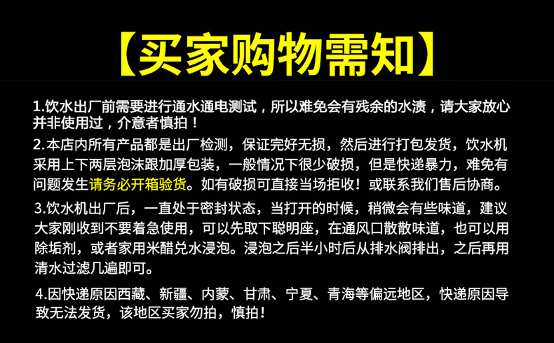 二:支持【开箱验货】快递暴力,收货时请拆箱检查饮水机有无破损,破损请拒收,后联系客服可免费补发新机!重要!!