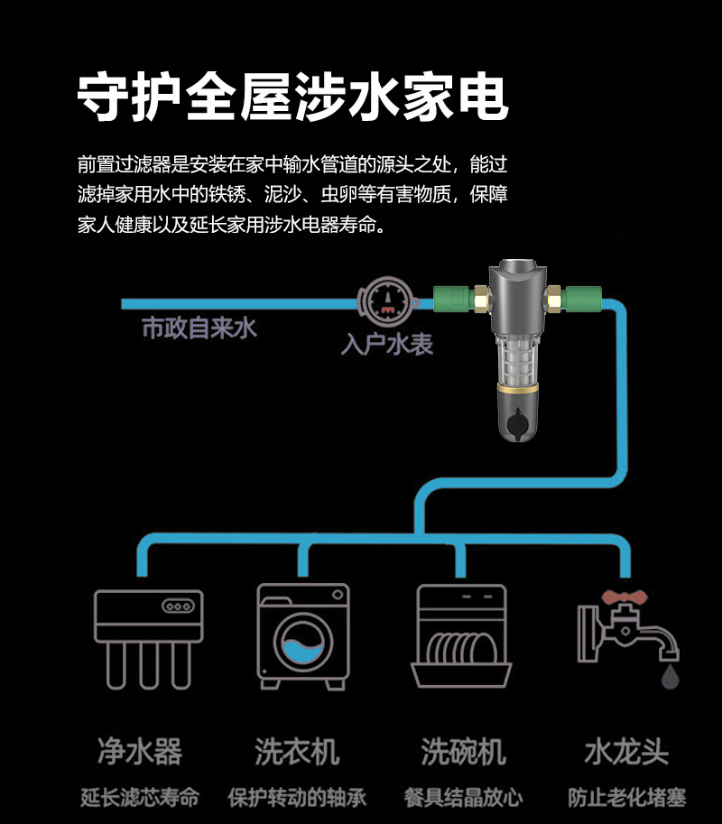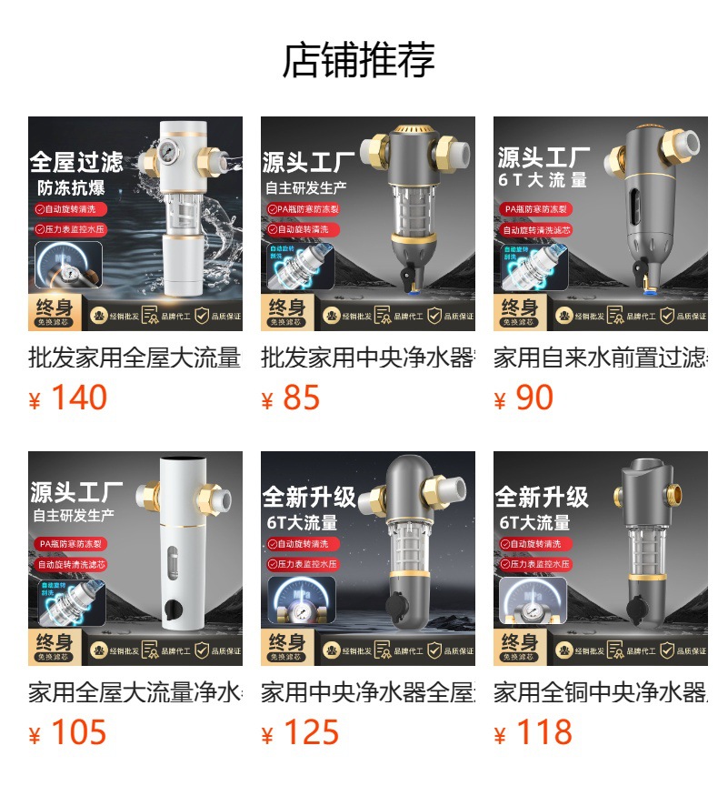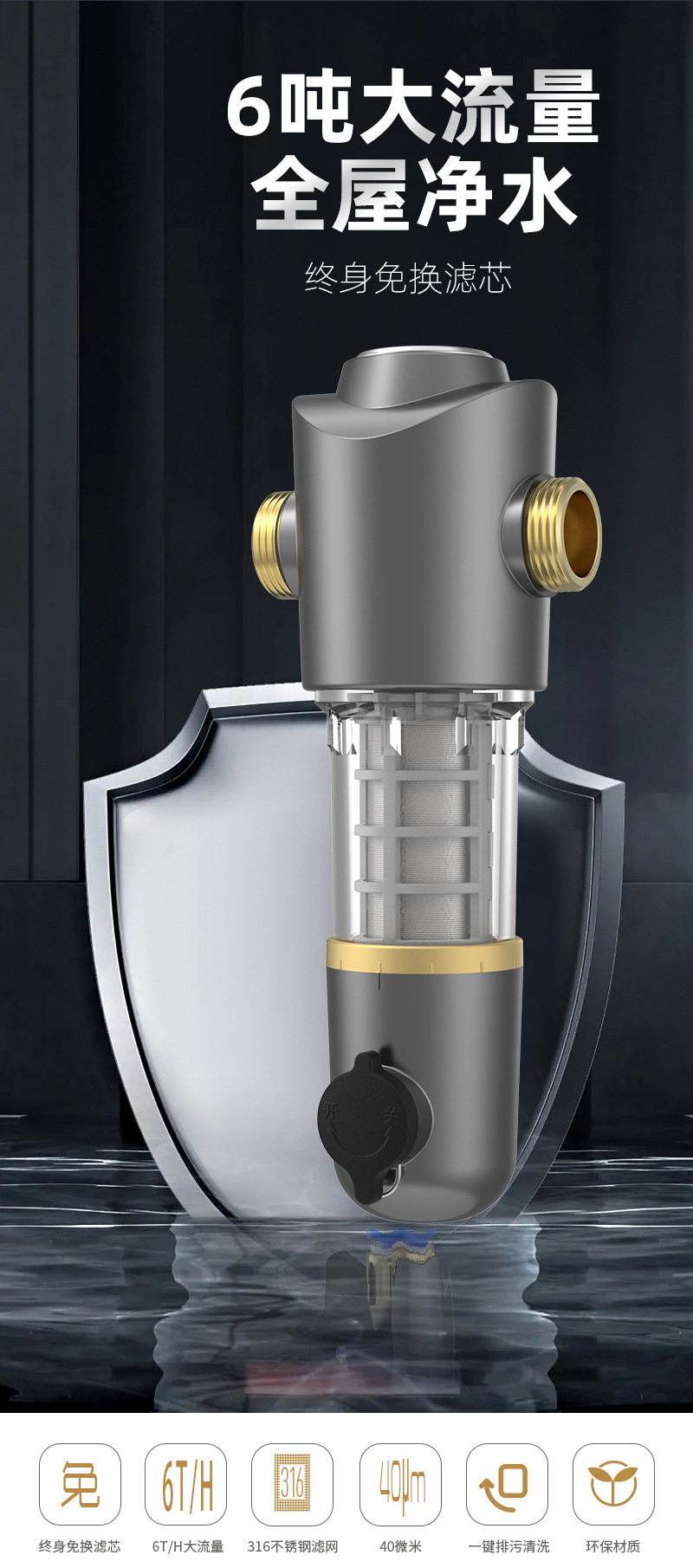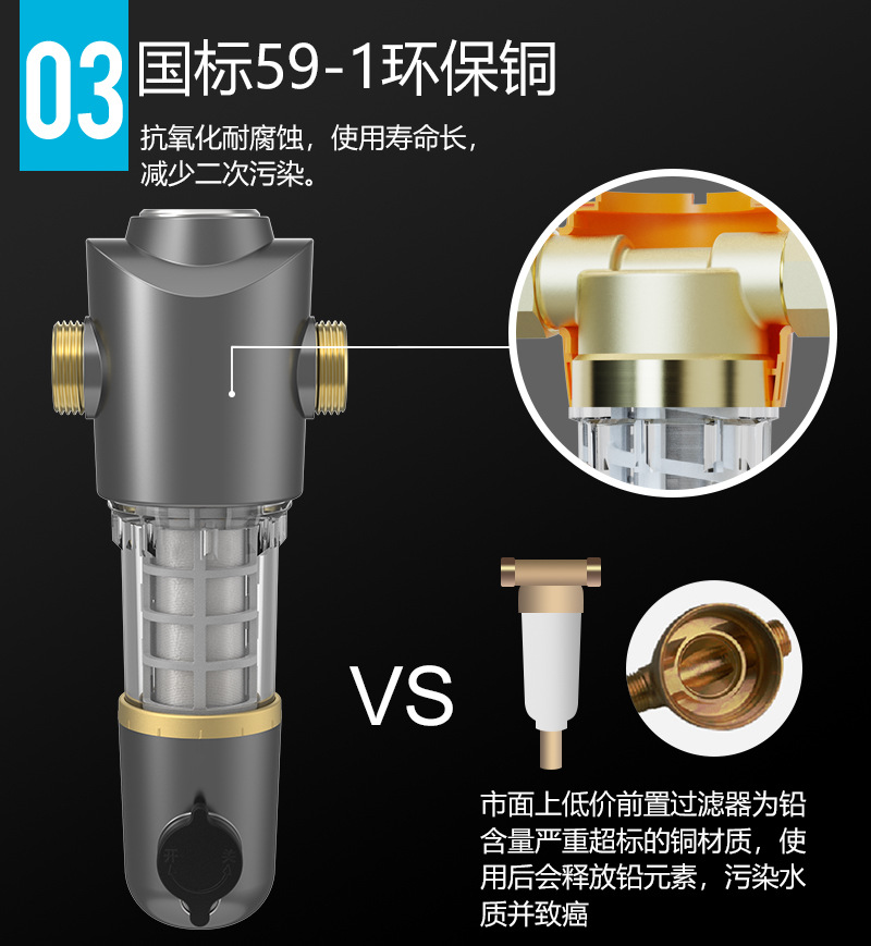 Máy lọc nước trung tâm hoàn toàn bằng đồng hộ gia đình rửa ngược tự động làm sạch vòi đồng hồ đo áp suất tiền lọc