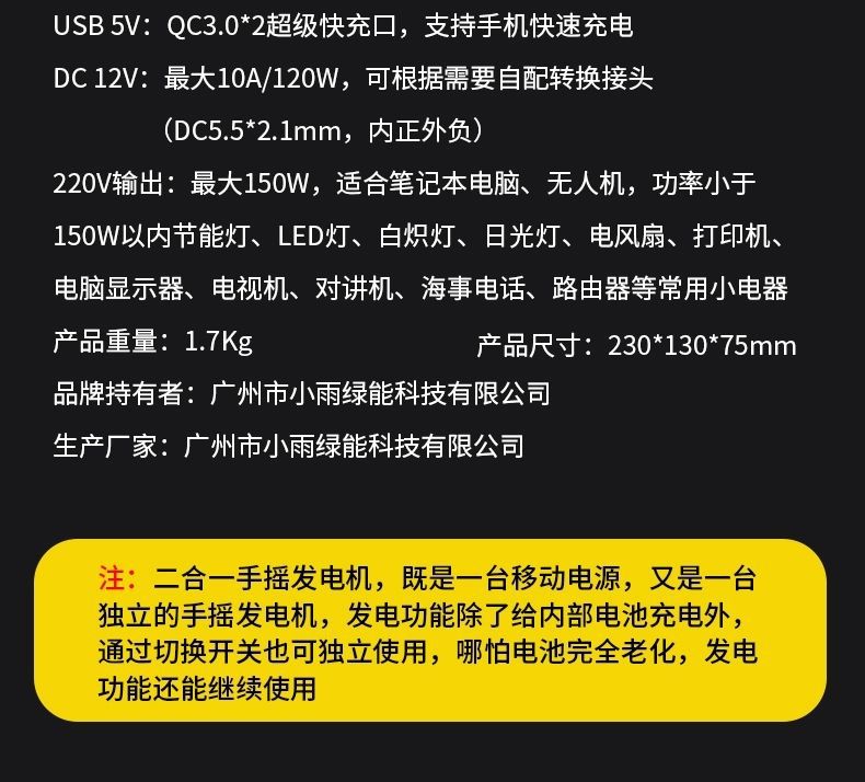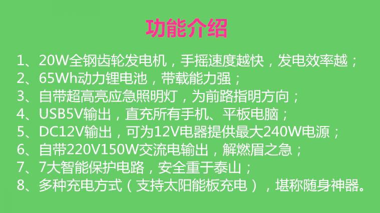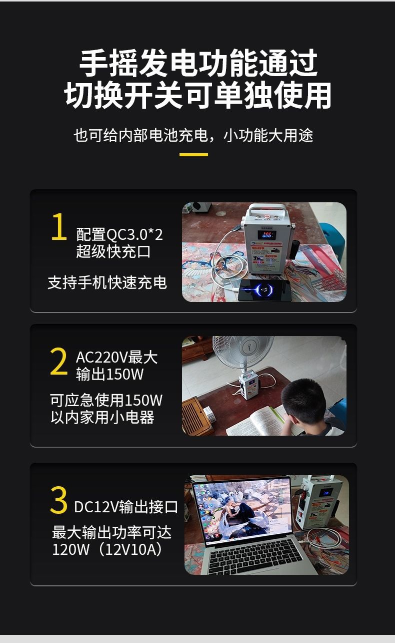 Máy phát điện cầm tay sạc điện thoại di động 220V trường điện cao 12V5V chiếu sáng