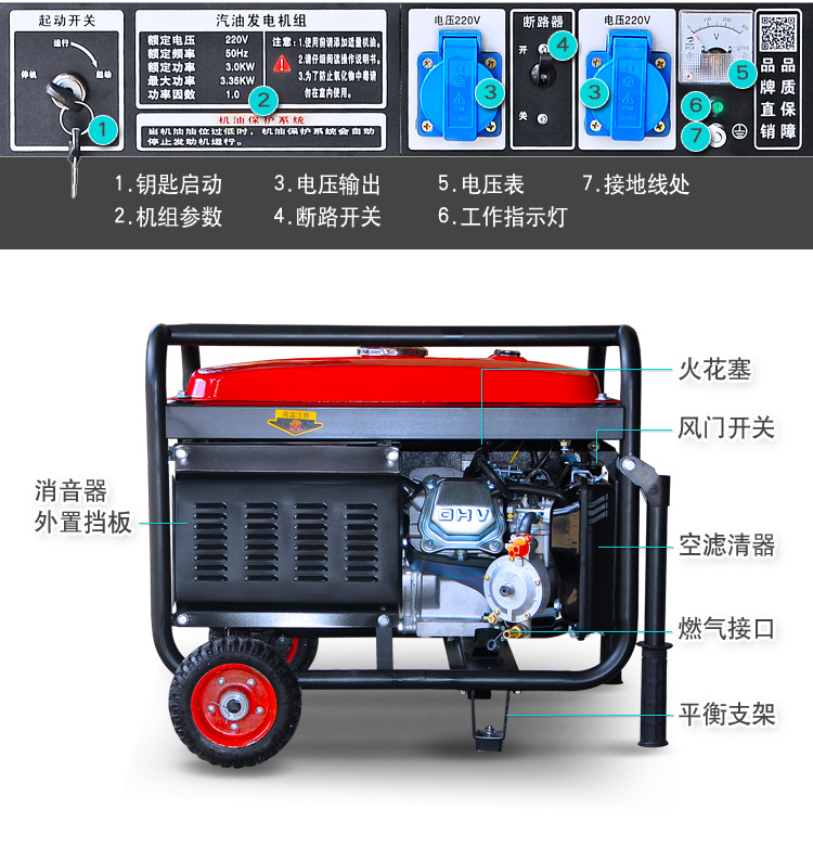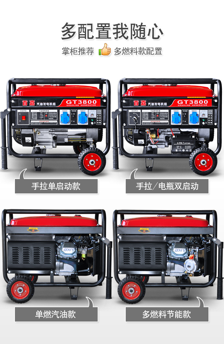 Máy phát điện chạy xăng cỡ nhỏ Shoujia 3kw 1 pha 220V 3 pha 380v hộ gia đình 5kw/6 kw 8KW/10 kw