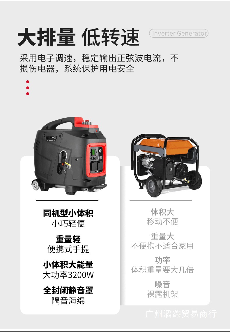 Máy phát điện chạy xăng Hemei 220V cao cấp kéo tay hộ gia đình nhỏ không ồn chuyển đổi tần số cắm trại di động