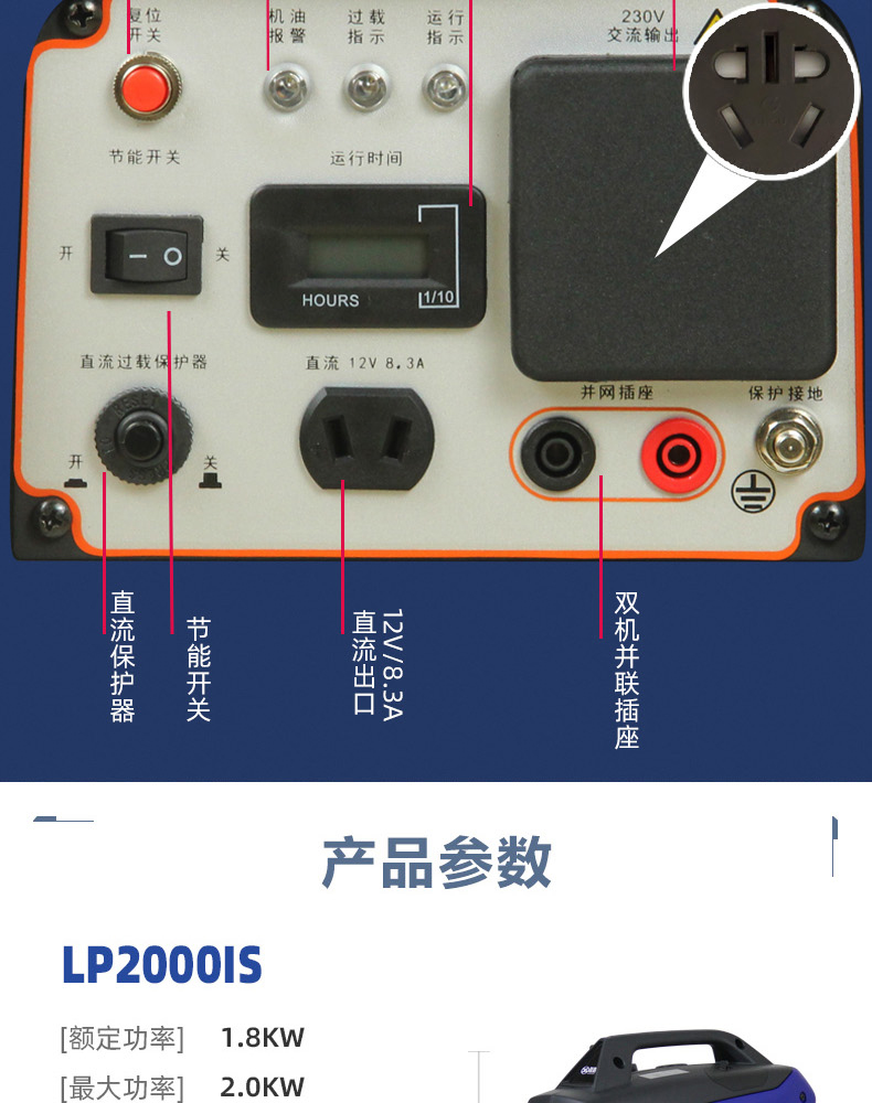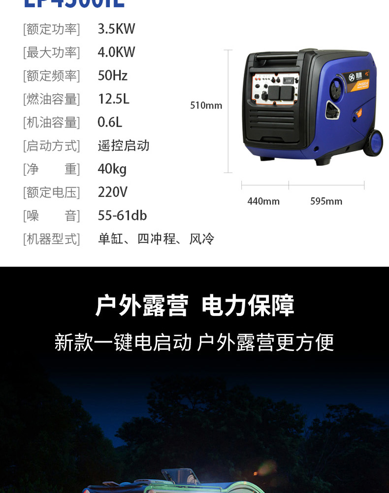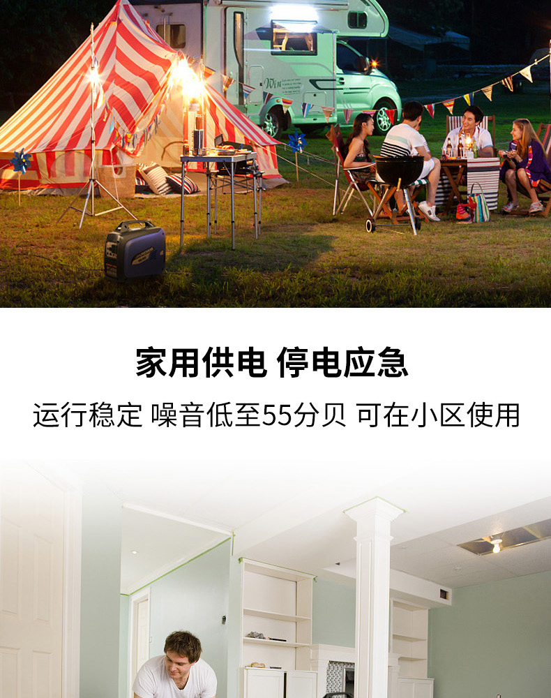Máy phát điện chạy xăng không ồn 2.4 chuyển đổi tần số xách tay di động khởi động điện nhỏ tại nhà mini 2 nghìn