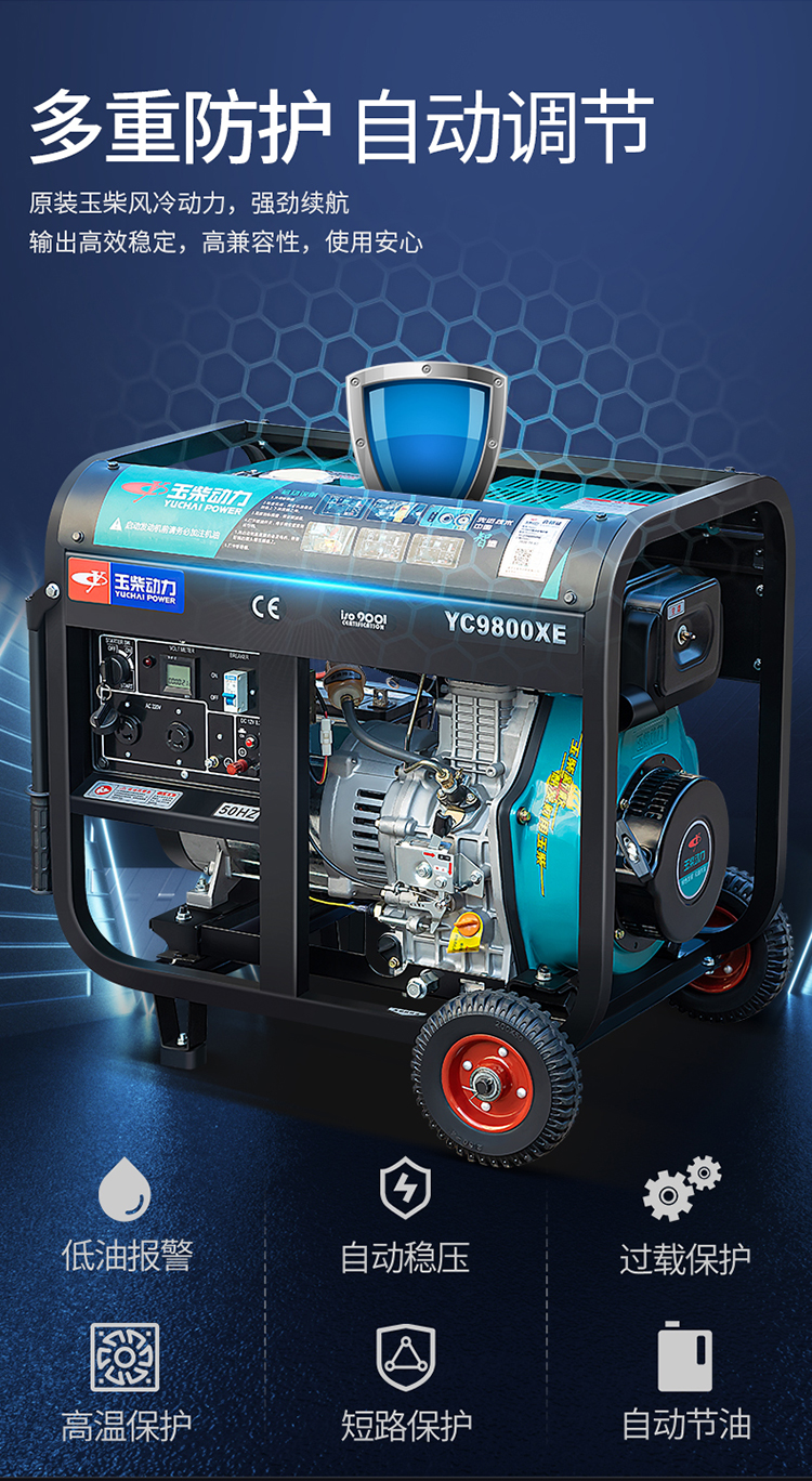 Máy phát điện diesel công suất Yuchai 3KW / 5/6/8 / 10kW một pha 220V ba pha 380V câm hộ gia đình