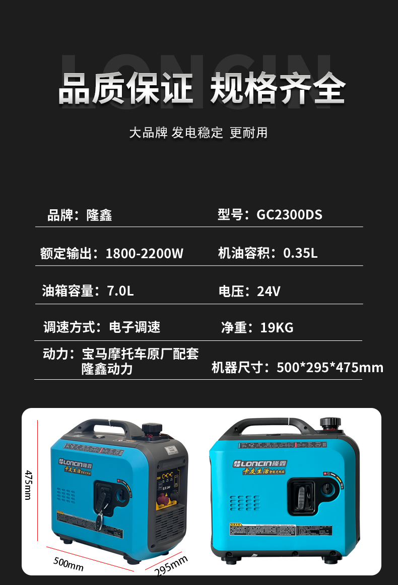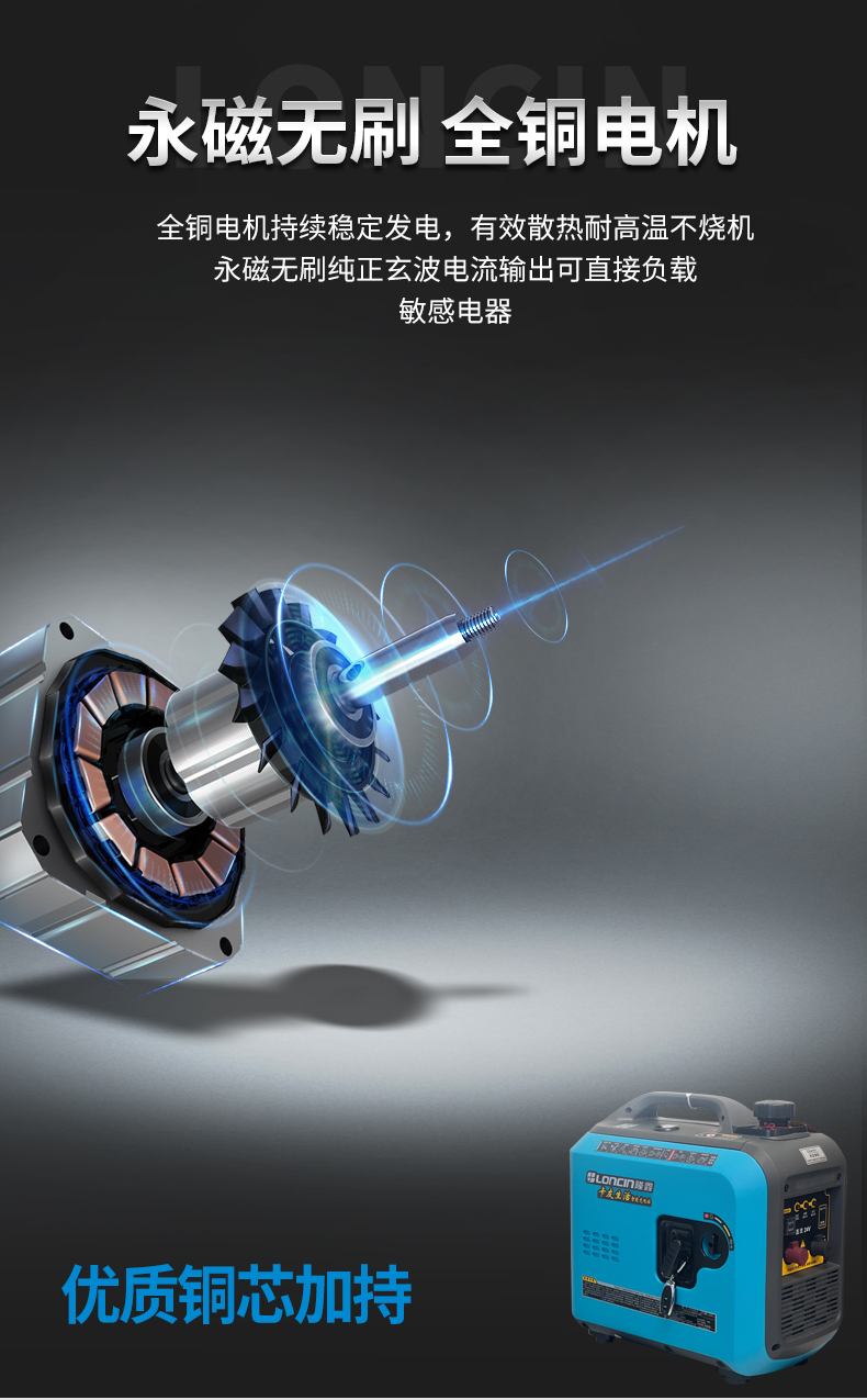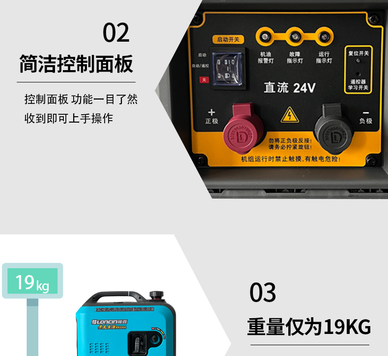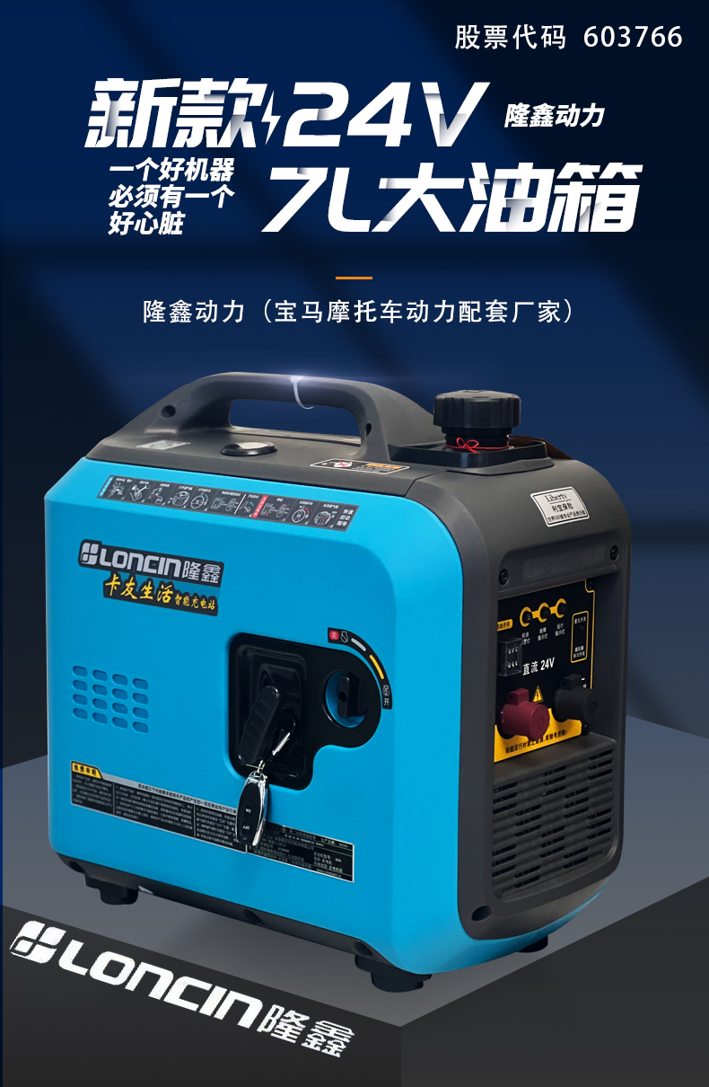 Máy phát điện Loncin 24v DC điều hòa không khí đậu xe tải xăng di động hộ gia đình tắt tiếng chuyển đổi tần số