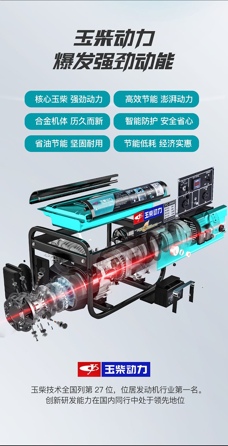 Máy phát điện nhỏ chạy xăng điện Yuchai 3KW / 5/6/8 / 10kW một pha 220V ba pha 380V gia đình