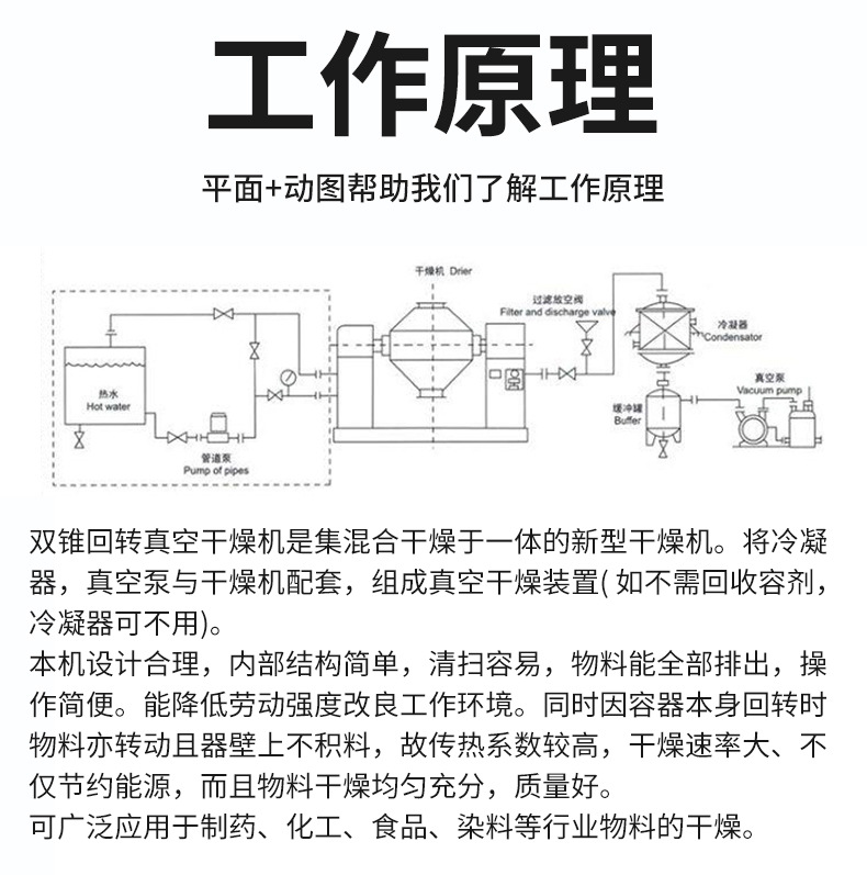 Máy sấy hình nón đôi nhiệt độ thấp Amylase Thiết bị sấy gia vị Máy sấy chân không quay hình nón đôi
