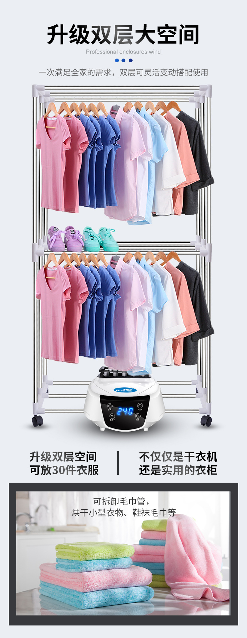 Sản phẩm nổi bật với các tính năng: Máy sấy quần áo gia dụng công suất cao thông minh Máy sấy khô nhanh nhỏ khử trùng nhiệt độ cao và loại bỏ mạt tủ quần áo hẹn giờ gió cao. Quý khách có nhu cầu mua Tủ sấy thực phẩm nhập khẩu vui lòng liên hệ với chúng tôi để được tư vấn hỗ trợ. Dịch vụ mua hàng Trung Quốc sẽ hỗ trợ quý khách mua hàng từ nhà cung cấp và giao tới tận tay quý khách hàng..