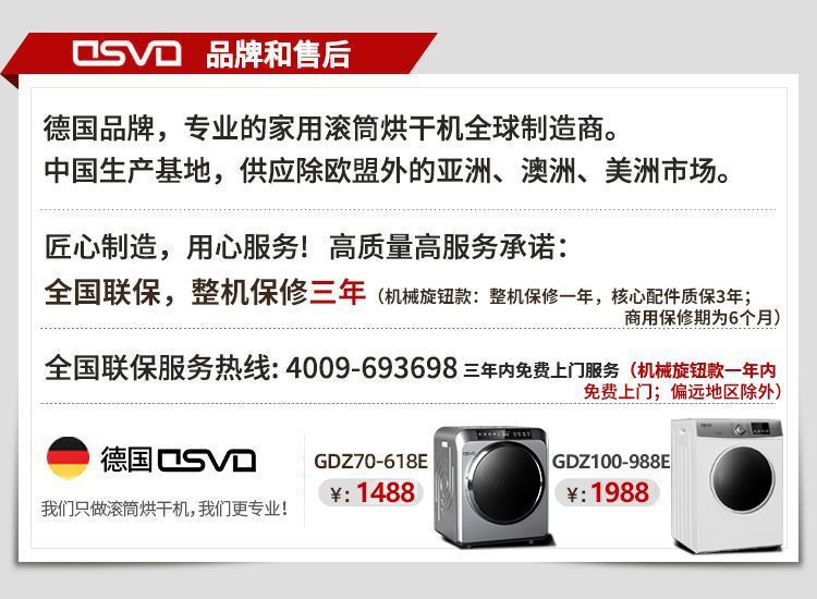 Máy sấy quần áo OSVO của Đức 7-10kg máy sấy khô nhanh loại nhỏ gia đình công suất lớn diệt khuẩn tia cực tím UVC