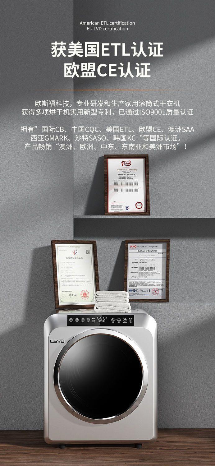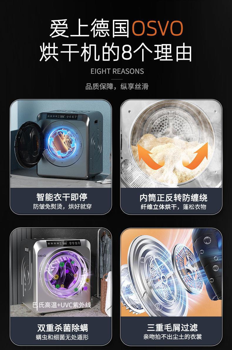 Máy sấy quần áo OSVO của Đức Máy sấy khô nhanh loại nhỏ treo tường 7kg gia đình Khử trùng bằng tia cực tím UVC