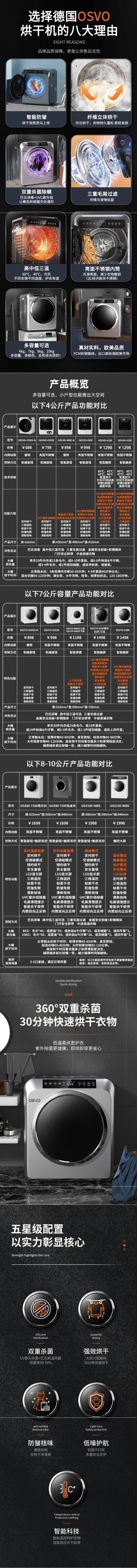 Máy sấy quần áo OSVO của Đức sấy khô quần áo gia đình loại trống nhỏ máy sấy khô nhanh diệt khuẩn ngoài mạt