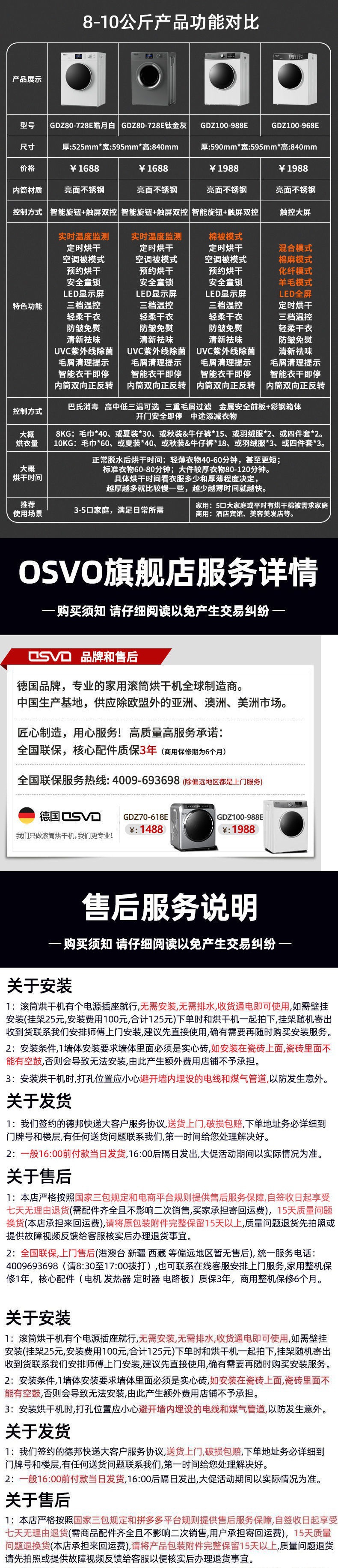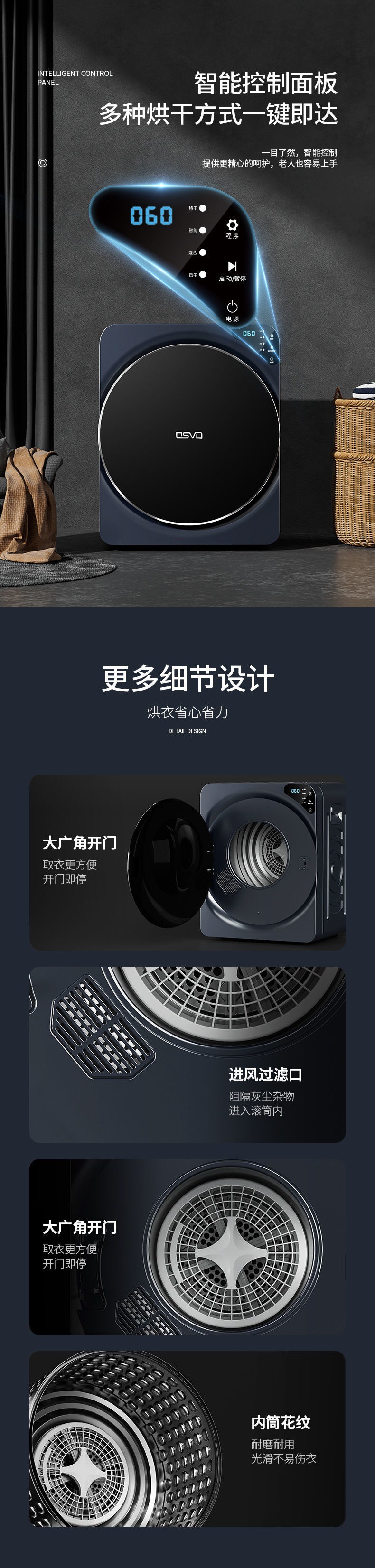Máy sấy quần áo OSVO của Đức trống 4-10kg Máy sấy quần áo treo tường gia đình nhỏ khử trùng hoàn toàn tự động quần áo khô
