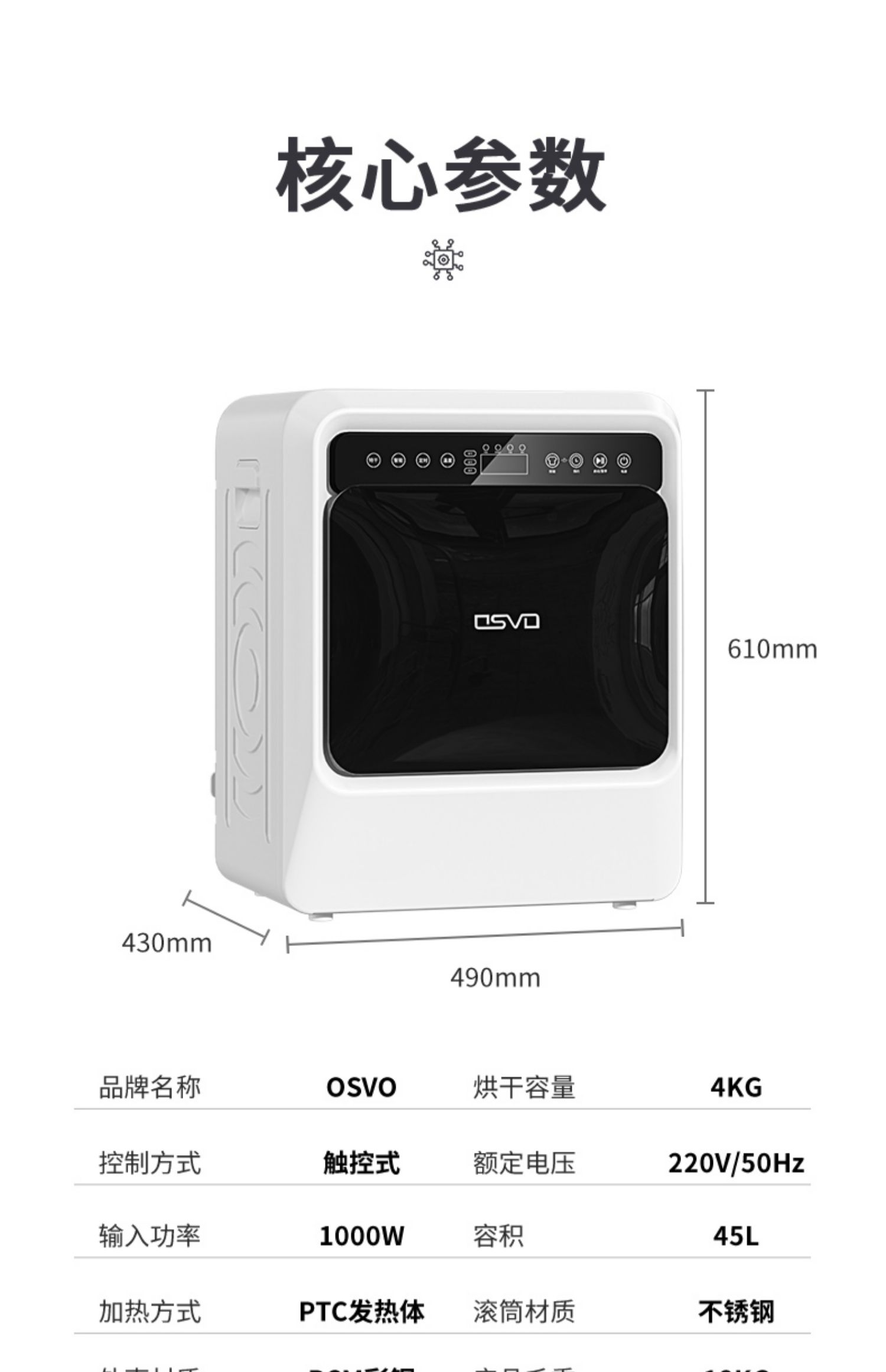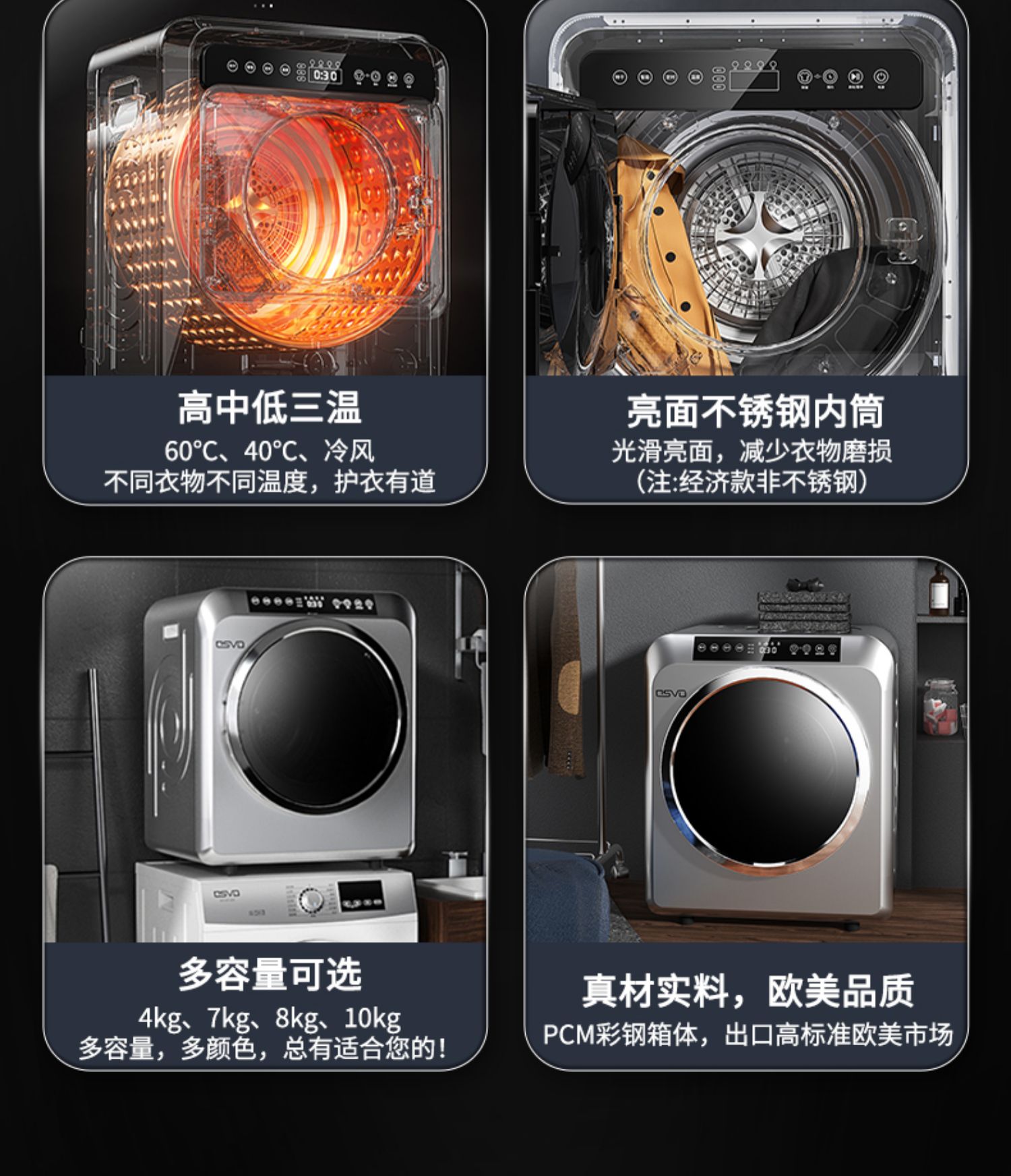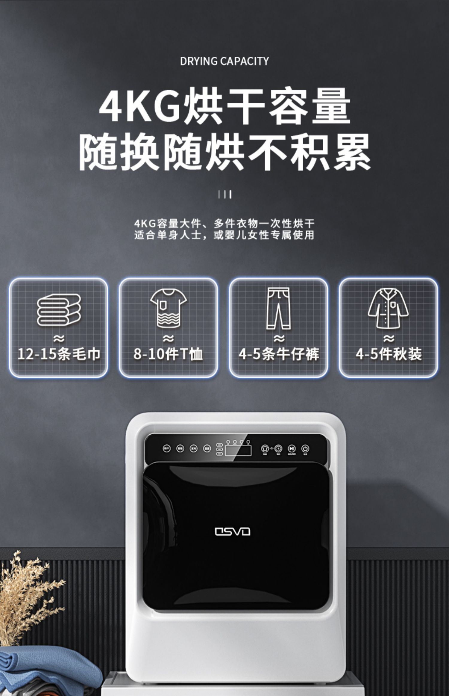 Máy Sấy Quần Áo OSVO gia đình Loại Trống Nhỏ 4kg Khử Trùng Vi Khuẩn Máy Sấy Nhanh