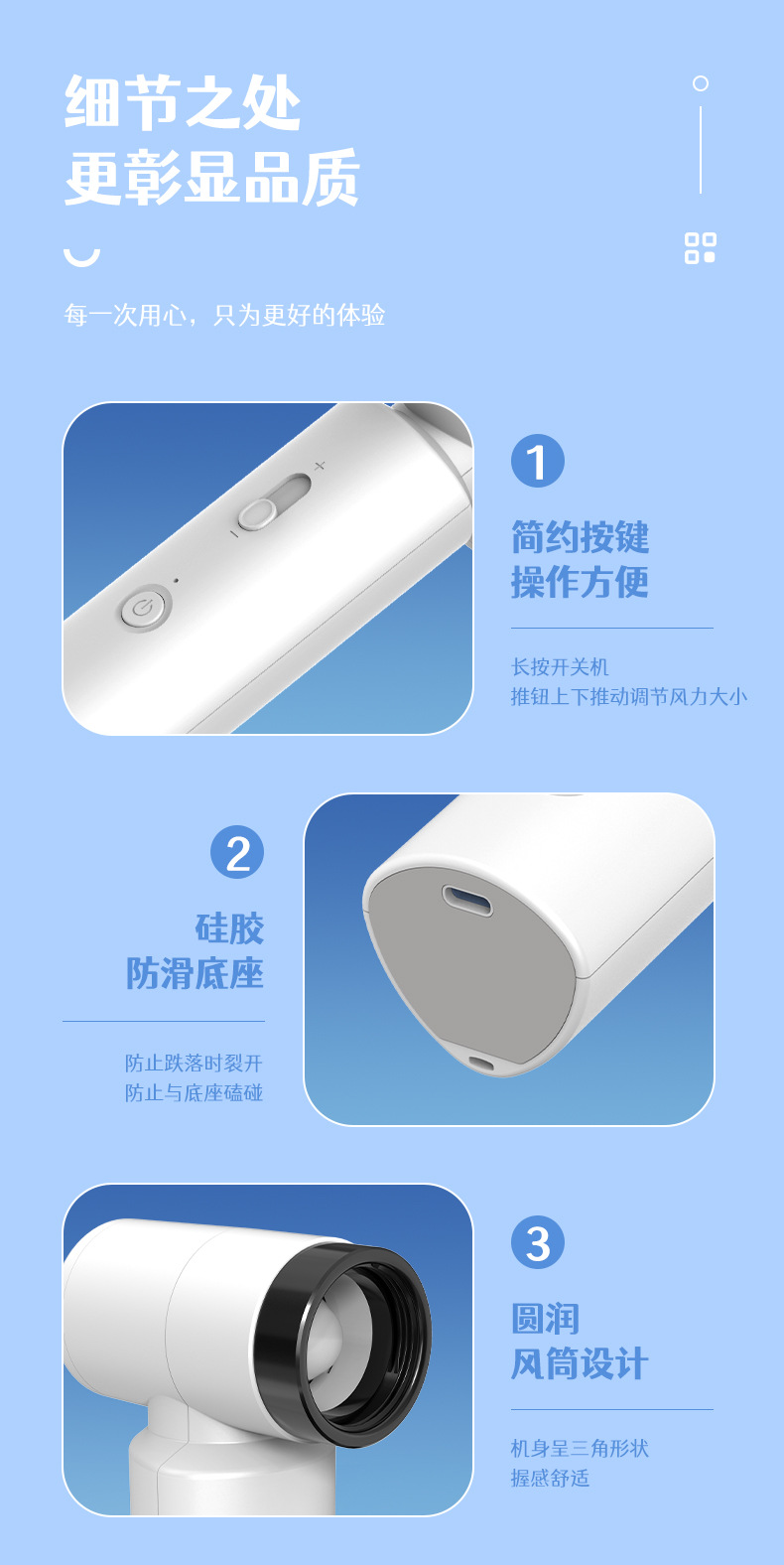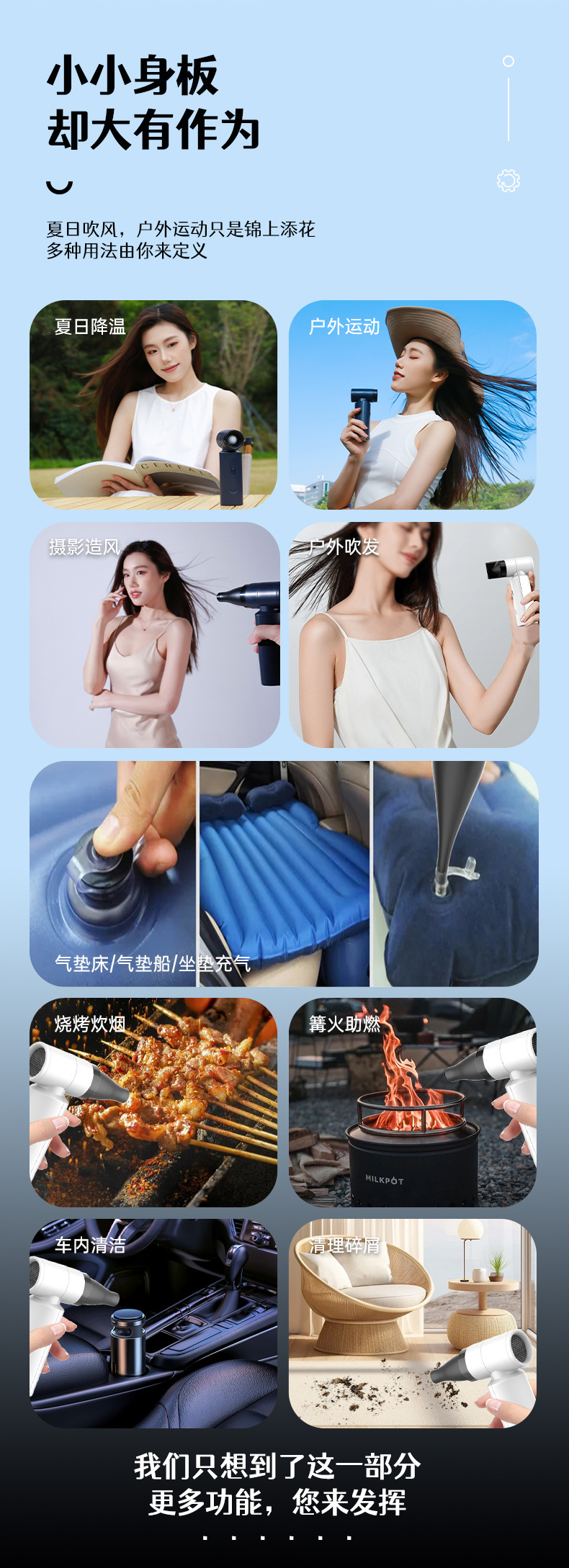 Sản phẩm nổi bật với các tính năng: Máy sấy tóc không dây tốc độ cao Douyin xuyên biên giới không chổi than Quạt tuabin ngoài trời áp suất cao súng thổi bụi cắm trại Quạt cầm tay. Quý khách có nhu cầu mua Máy sấy tóc nhập khẩu vui lòng liên hệ với chúng tôi để được tư vấn hỗ trợ. Dịch vụ mua hàng Trung Quốc sẽ hỗ trợ quý khách mua hàng từ nhà cung cấp và giao tới tận tay quý khách hàng..