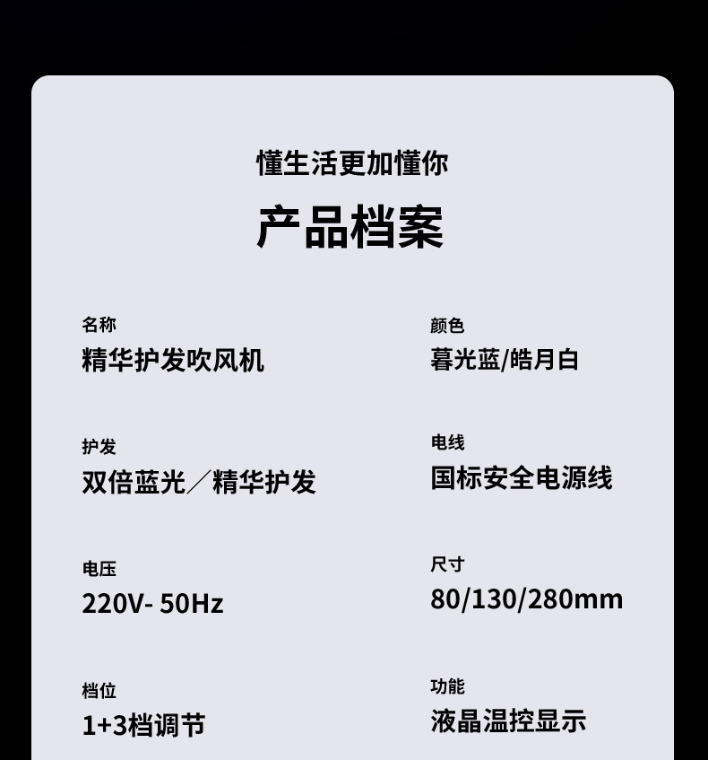 风速调节:上下推动,快速切换两档风速