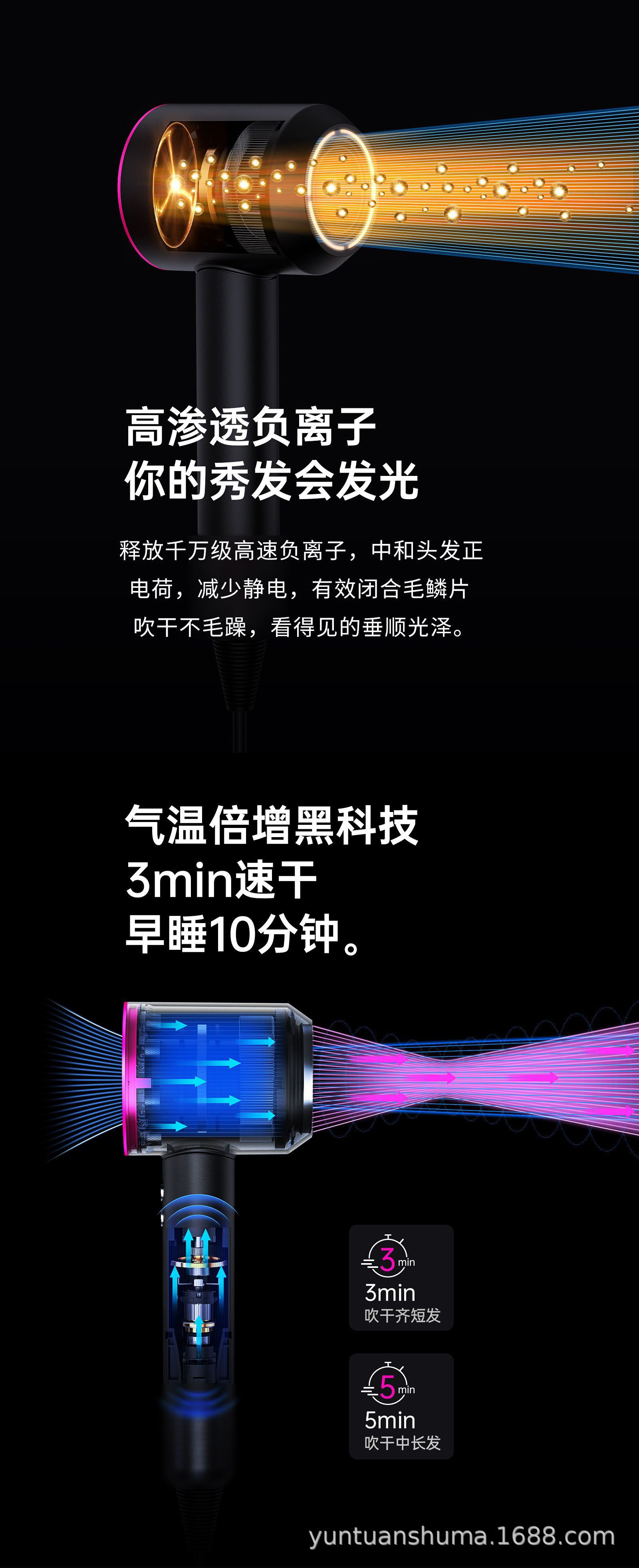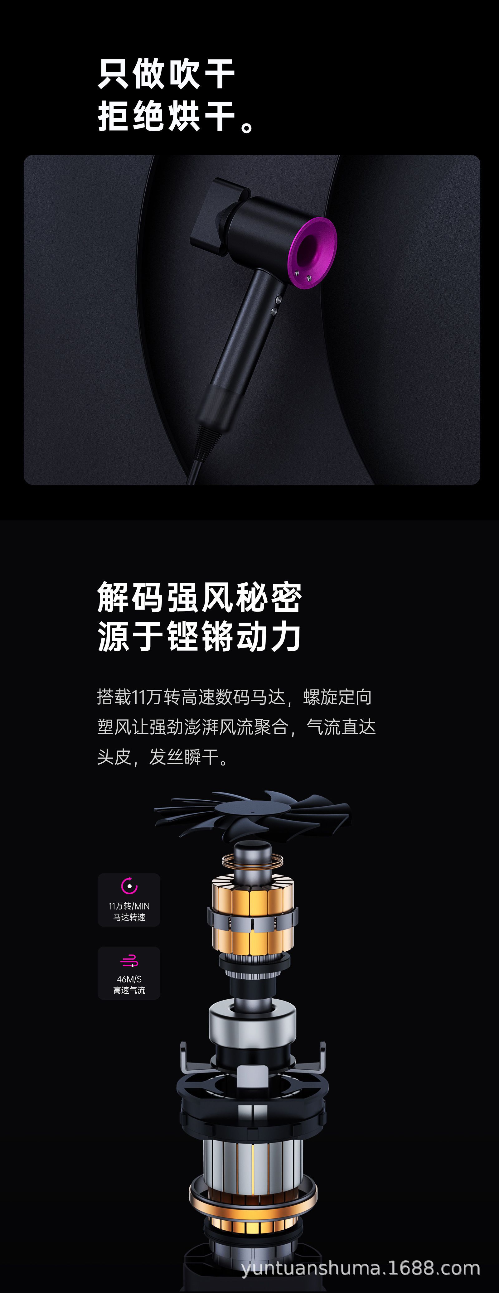 3:本电吹风为金属CNC雕刻成型万转电机,市面上低端款为塑料电机
