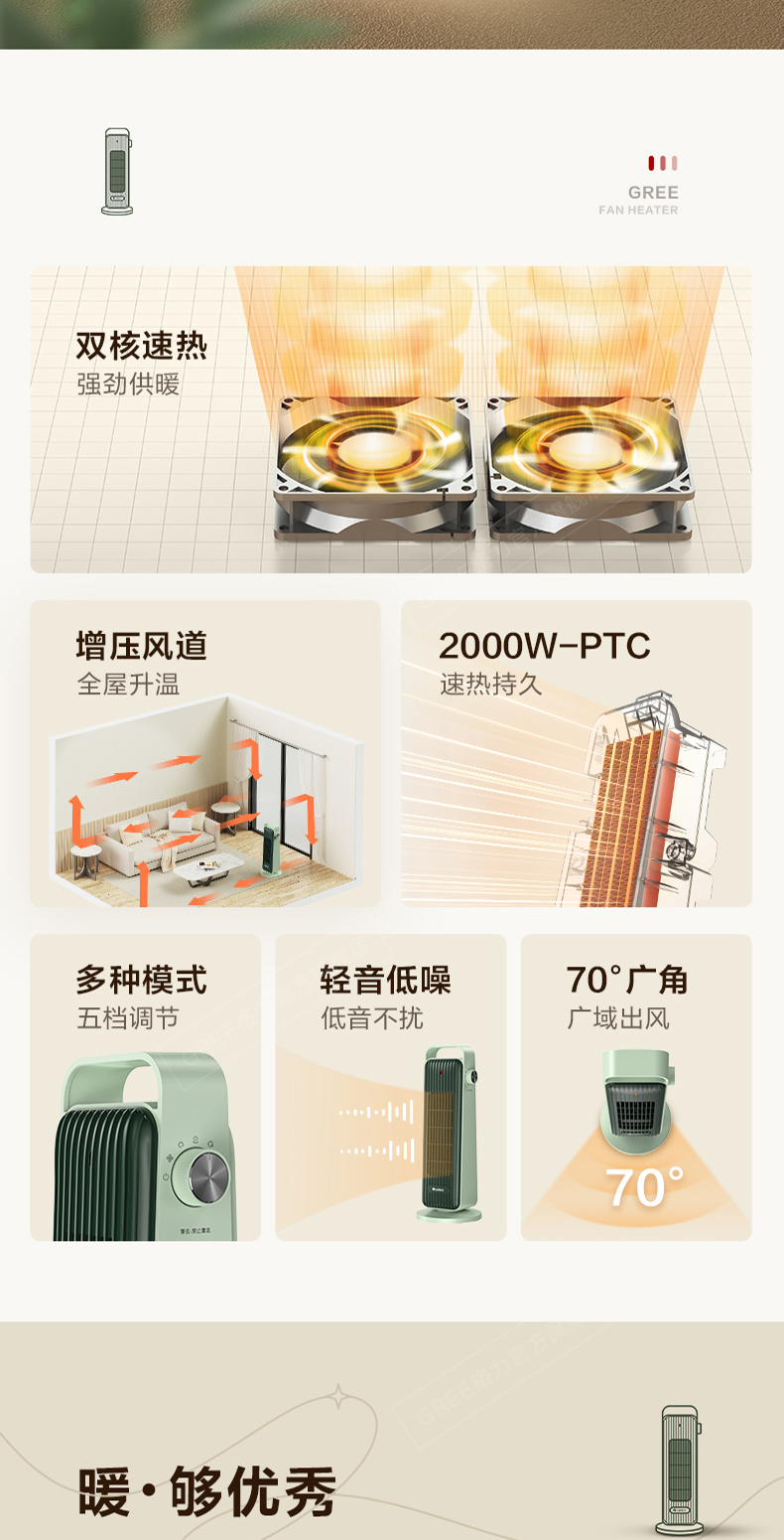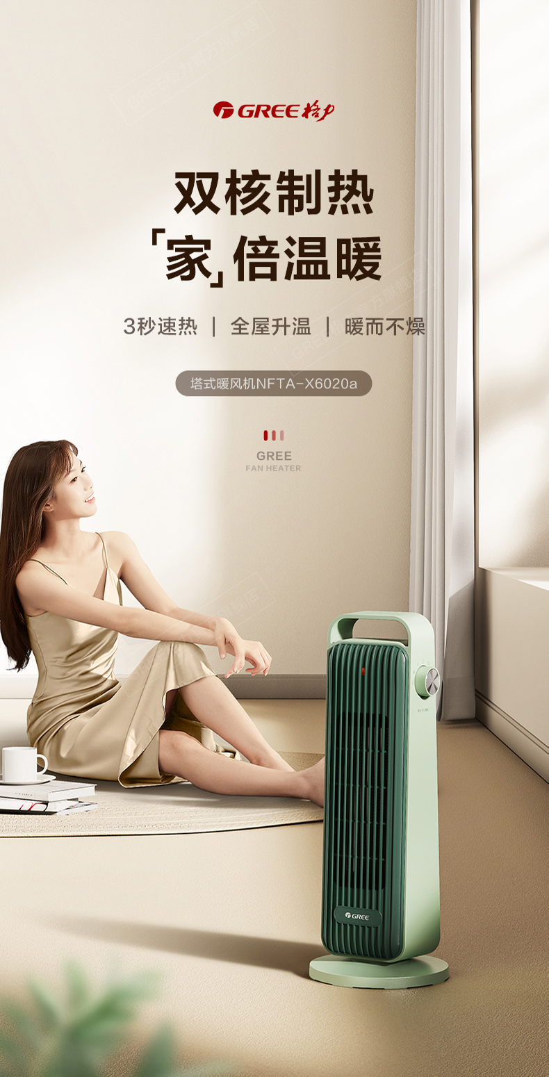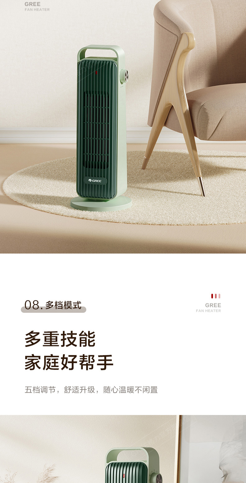 Máy sưởi không khí Gree sử dụng kép sưởi ấm và làm mát văn phòng ký túc xá phòng ngủ tiết kiệm năng lượng sưởi ấm nhanh lắc đầu máy sưởi điện không khí nóng