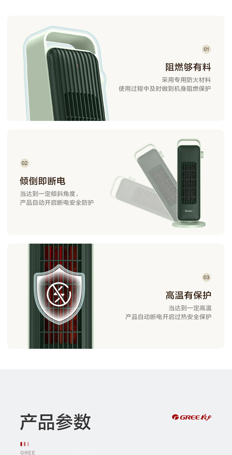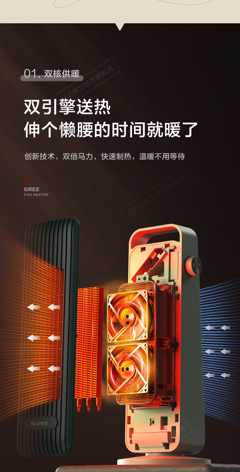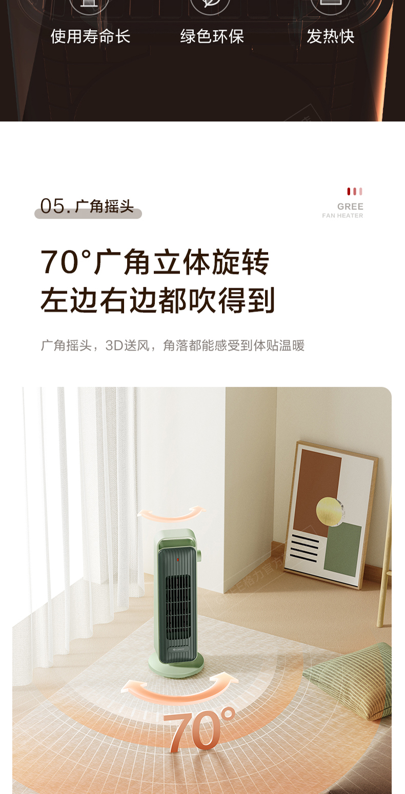 Máy sưởi không khí Gree sử dụng kép sưởi ấm và làm mát văn phòng ký túc xá phòng ngủ tiết kiệm năng lượng sưởi ấm nhanh lắc đầu máy sưởi điện không khí nóng