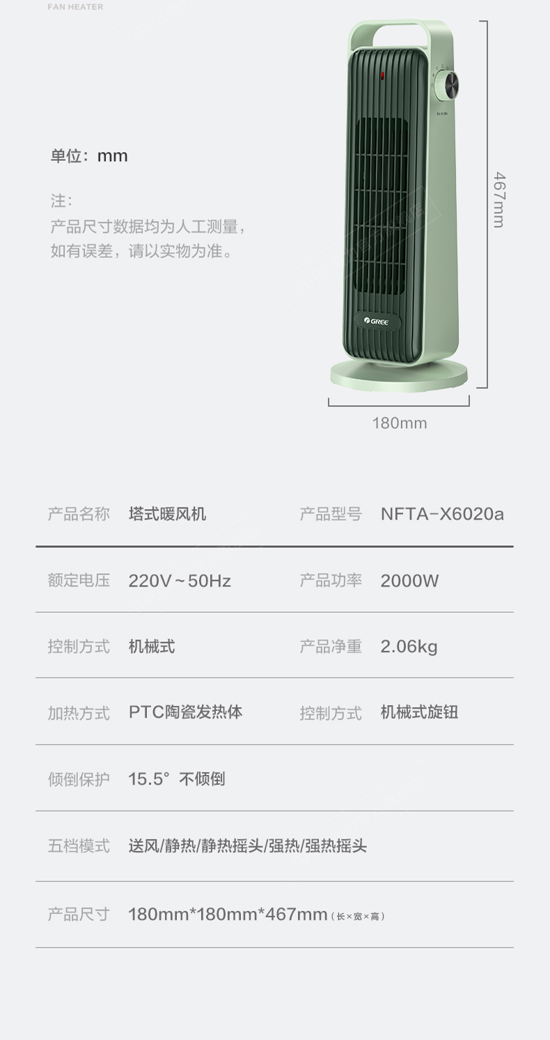 Máy sưởi không khí Gree sử dụng kép sưởi ấm và làm mát văn phòng ký túc xá phòng ngủ tiết kiệm năng lượng sưởi ấm nhanh lắc đầu máy sưởi điện không khí nóng