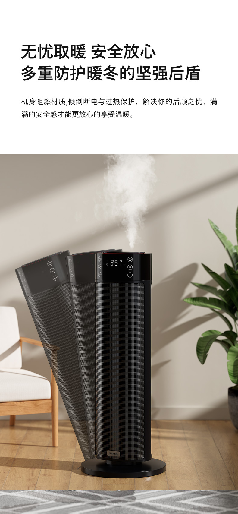 Máy sưởi Philips graphene Máy sưởi gia đình tạo độ ẩm nhanh không khí nóng tiết kiệm năng lượng bếp phòng khách phòng ngủ