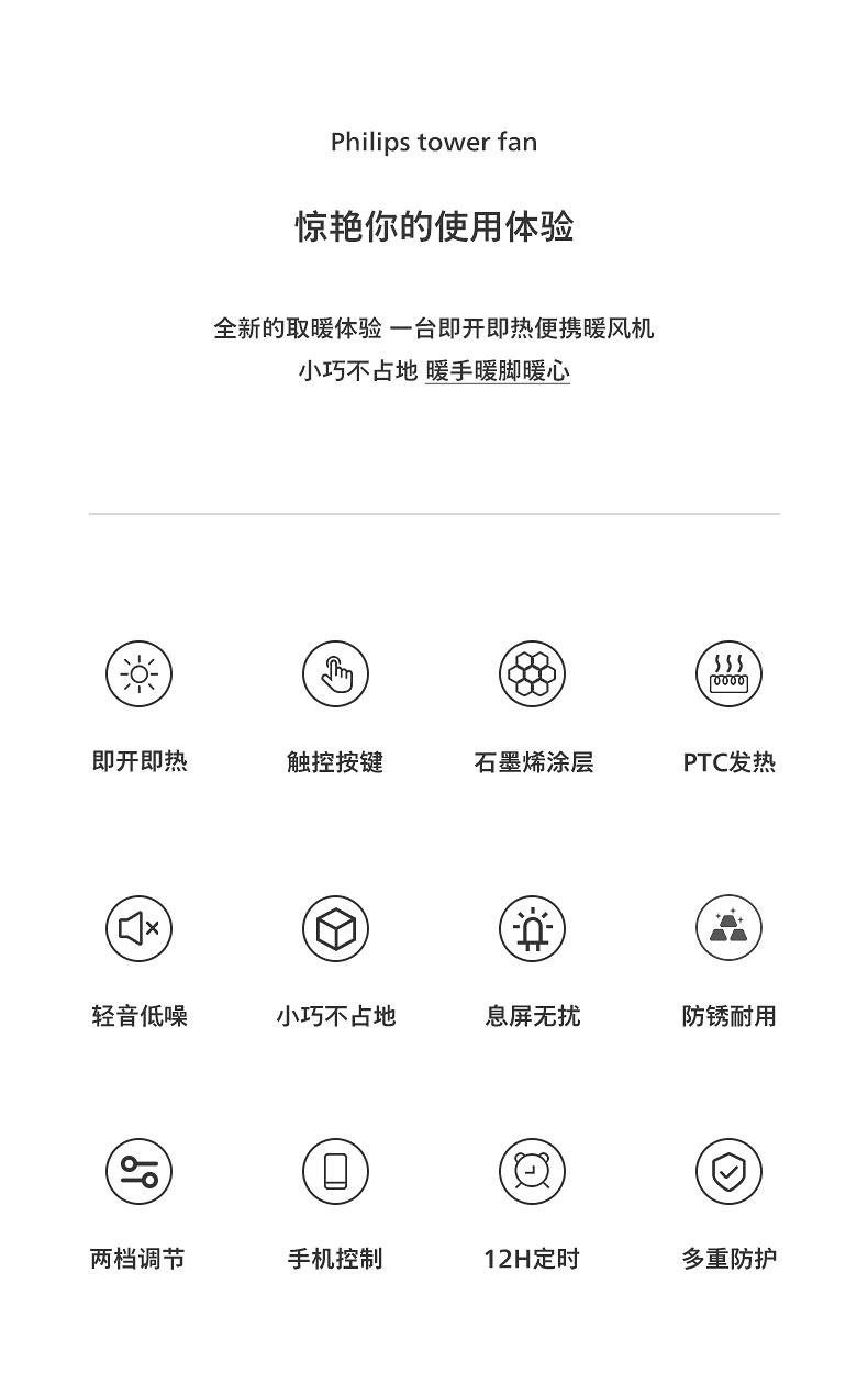 Máy sưởi Philips graphene Máy sưởi không khí gia đình Máy sưởi điện tiết kiệm năng lượng Máy sưởi điện nướng nhanh không khí nóng