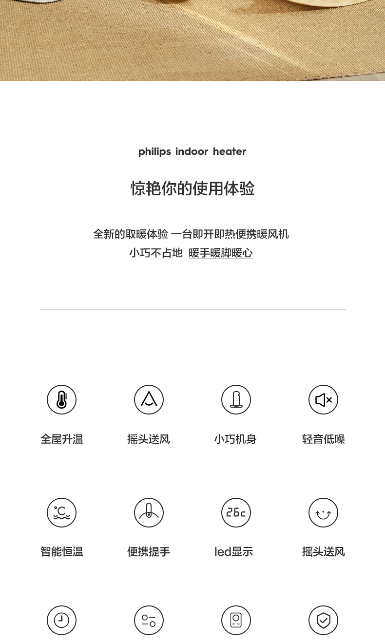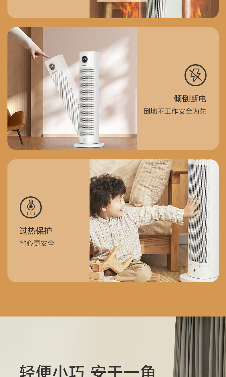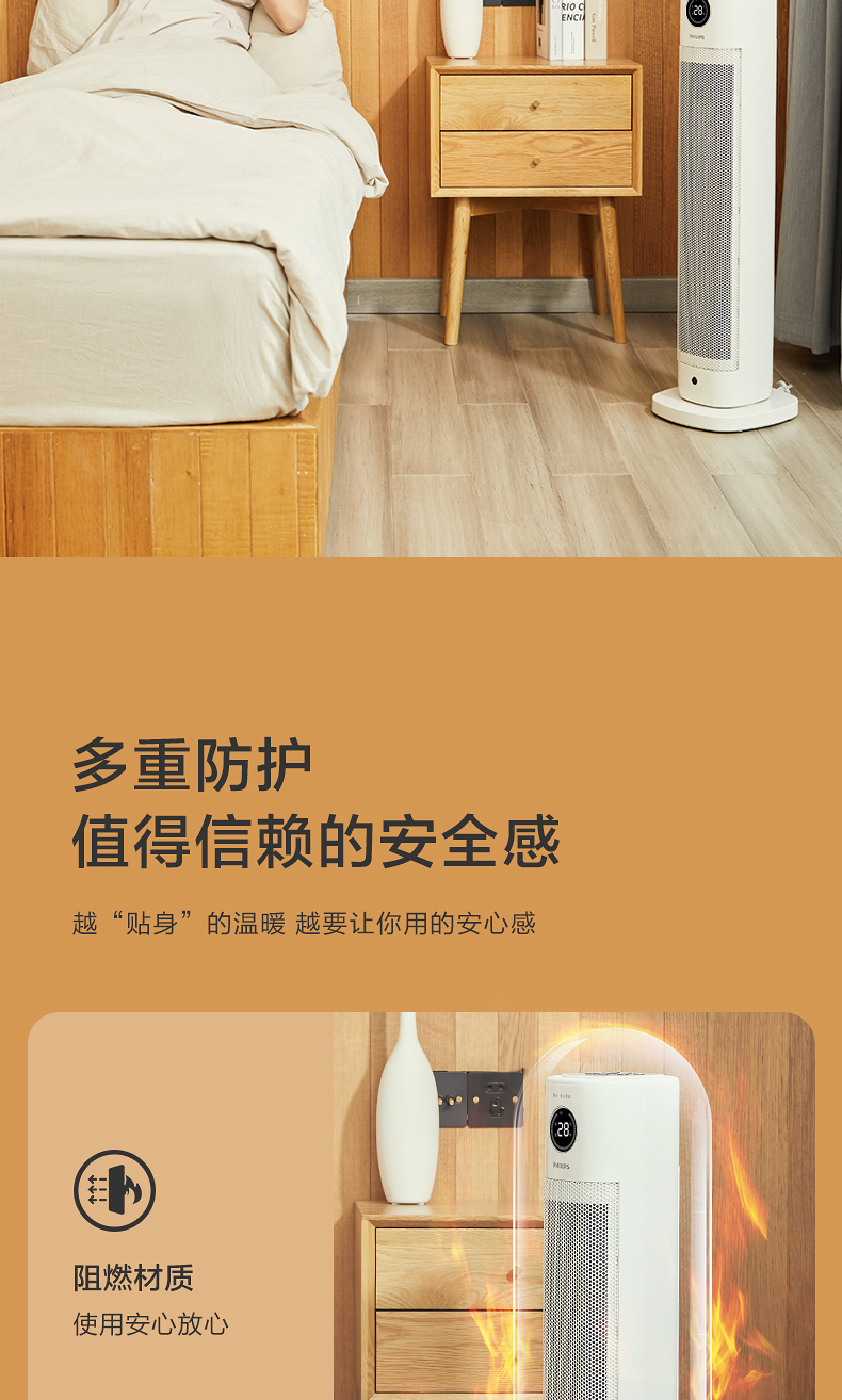 Máy sưởi Philips hộ gia đình nhỏ tiết kiệm năng lượng máy sưởi điện làm nóng nhanh phòng ngủ phòng tắm bé quạt nóng