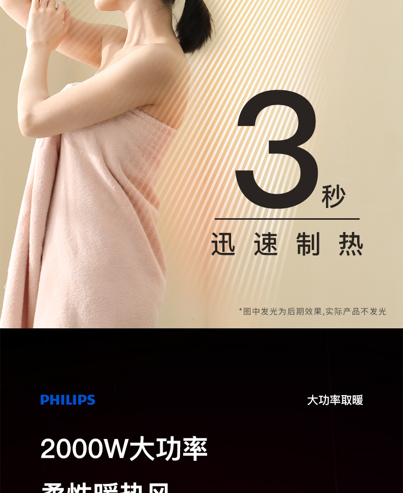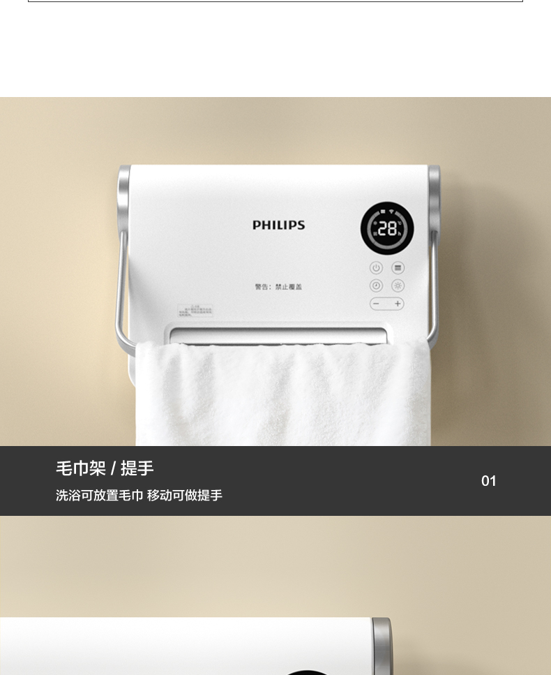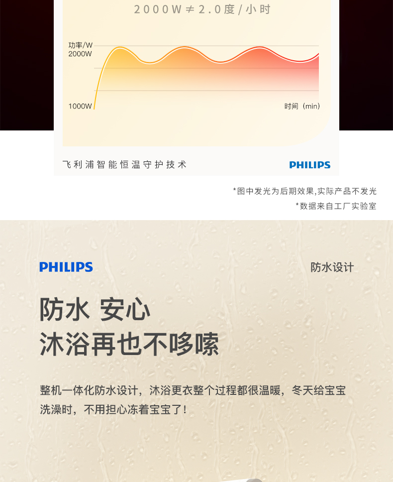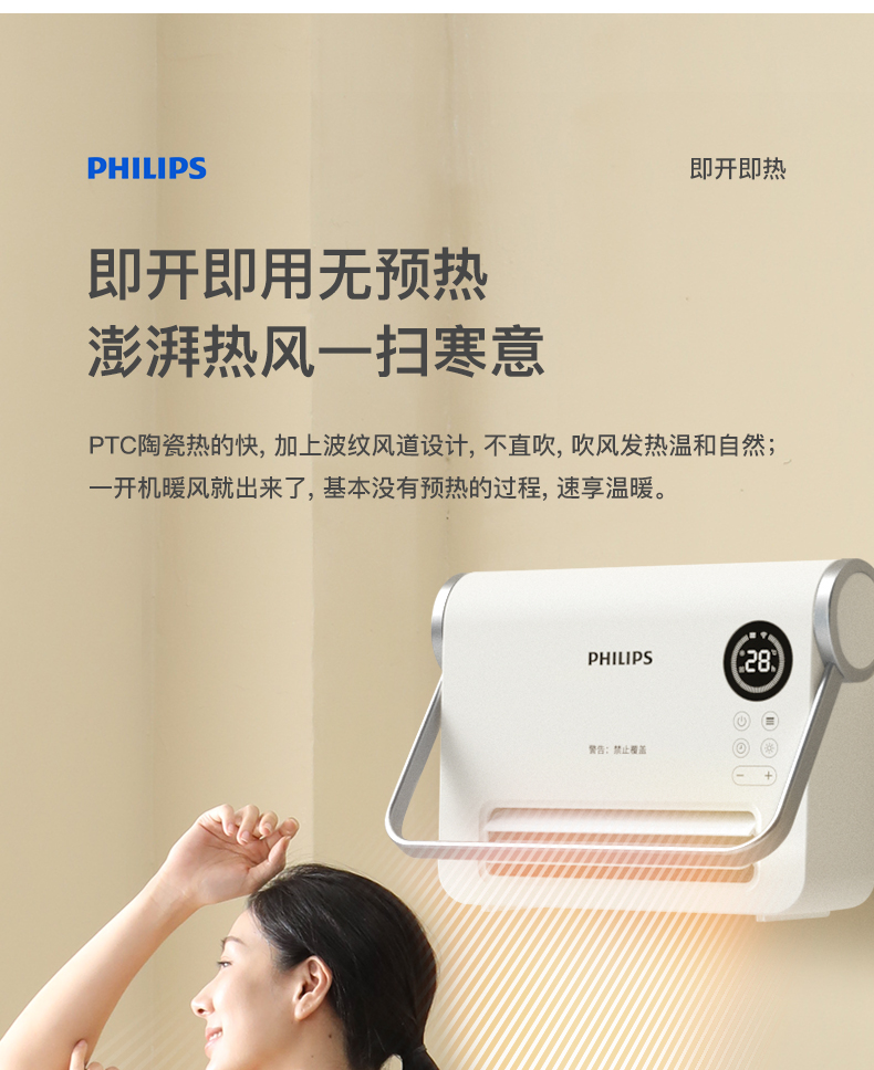 Máy sưởi Philips Máy sưởi phòng tắm hộ gia đình tiết kiệm năng lượng chống thấm nước làm nóng nhanh máy sưởi điện nhỏ treo tường máy sưởi