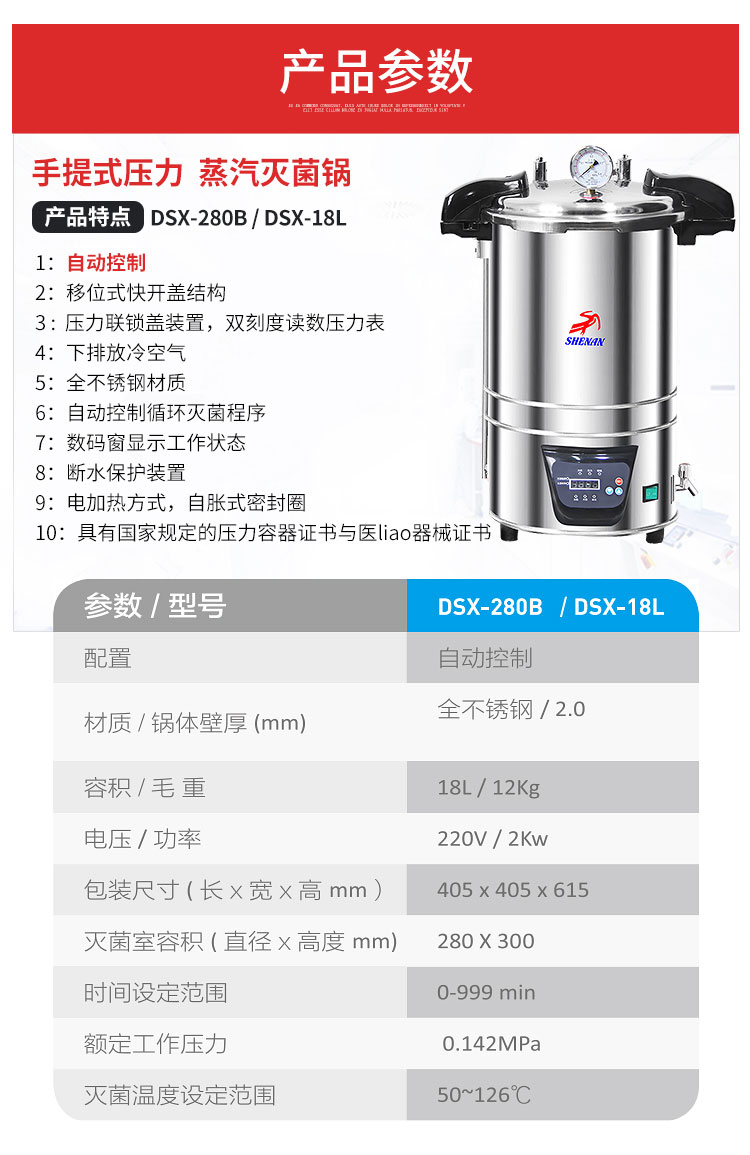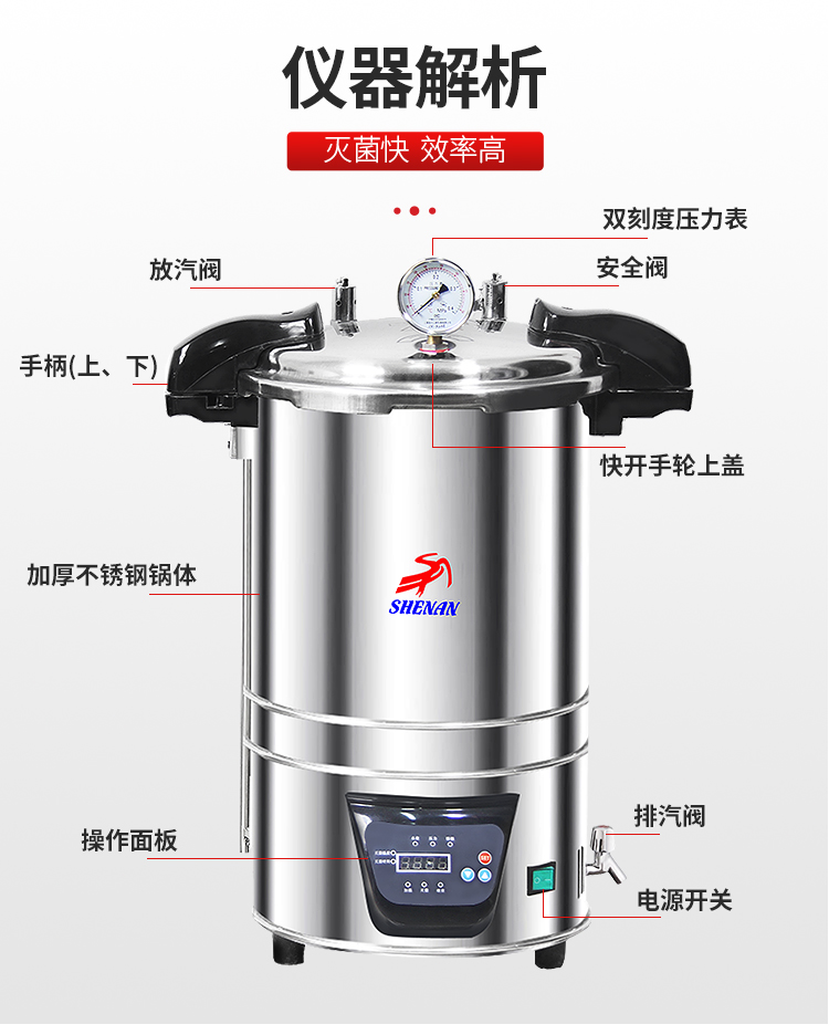 Máy tiệt trùng máy tiệt trùng bằng hơi nước đứng áp suất cao và nhiệt độ cao phòng thí nghiệm Shen’an máy tiệt trùng máy tiệt trùng máy tiệt trùng cầm tay