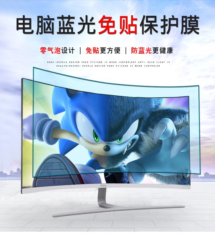 Máy tính chống ánh sáng xanh không cần dán Màn hình hiển thị 24 inch chống bức xạ Mặt cong 32 inch 34 treo màng bảo vệ giữ ẩm cho mắt 27 inch