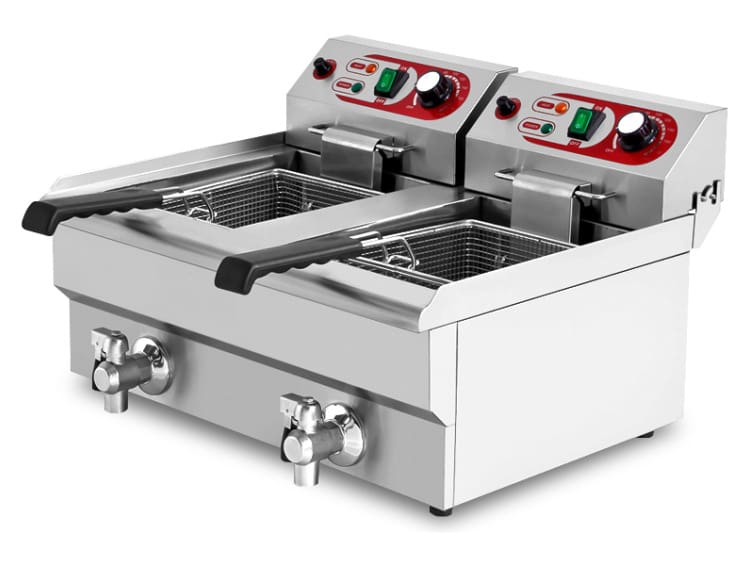 Máy tính để bàn thương mại nhiệt độ không đổi nồi chiên điện nồi chiên sâu có van dầu gà rán bít tết hamburger khoai tây chiên bột chiên que nồi chiên xi lanh đôi là thiết bị nằm trong danh mục Đồ nhà hàng > Tủ hâm nóng, được thiết kế chuyên dụng cho các nhà hàng cần sự tiện nghi và chuyên nghiệp.