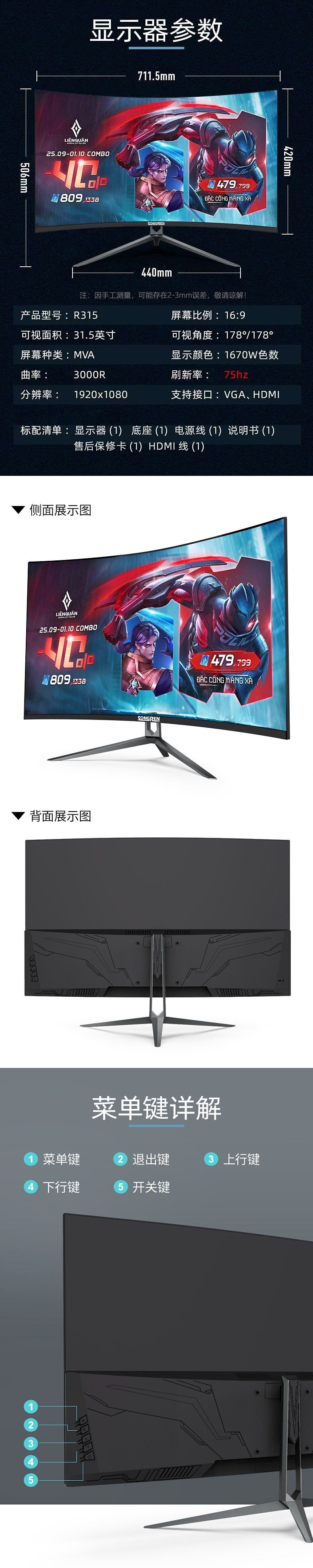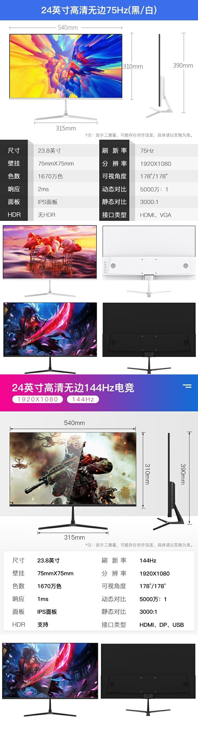 Độ phân giải: 1920×1080 Thương hiệu: Khác Mã số: nEW7gHytKcnF7NGz8qjeHq84Gk0= Cảnh áp dụng: sử dụng kinh tế Số chứng chỉ 3C: 2022091105020302 Kích thước: Đen cong 24 inch 75HZ được khuyên dùng cho các mẫu phổ biến/màu trắng cong 24 inch 75HZ được khuyên dùng cho các mẫu phổ biến/đen sáng 24- inch mặt thẳng 75HZ/mẫu hot Khuyến nghị: Đen cong 27 inch 75HZ/kiểu tốt nhất khuyên dùng Trắng cong 27 inch 75HZ/kiểu nóng khuyên dùng đen cong 32 inch 60HZ/kiểu nóng khuyên dùng trắng cong 32 inch 60HZ/trắng đẹp 24 inch mặt thẳng 75HZ/trắng bạc Mặt thẳng 27 inch 75HZ/đen mờ 27 inch mặt đối mặt 75HZ/phong cách nóng bỏng thể thao điện tử Đen cong 27 inch 2K144HZ/phong cách thể thao điện tử nóng bỏng màu trắng cong 27 inch 2K144/chơi game màu đen mờ Bề mặt cong 24 inch 144HZ/đen mờ Bề mặt cong 27 inch 144HZ/trắng bạc 22 inch không viền 75HZ/giám sát Mặt thẳng 19 inch có khung màu đen/mẫu màn hình Mặt 19 inch có khung màu đen có khung Model: 1 Mức hiệu suất năng lượng: Không có Tỷ lệ màn hình: 16:9 Loại giao diện: VGA Loại bảng điều khiển: IPS (công nghệ) Chứng nhận: Khác
