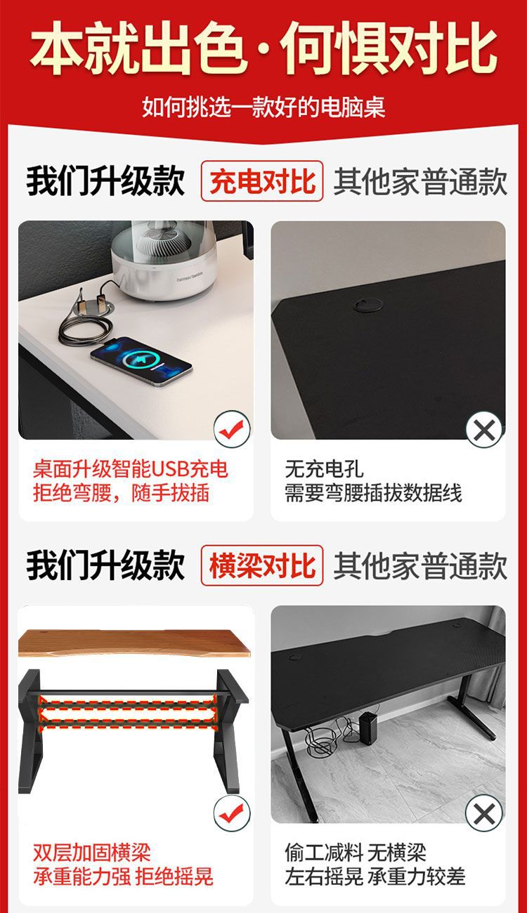 Máy tính thể thao điện tử lưới màu đỏ máy tính để bàn nhà ký túc xá bàn công nghệ cảm giác có thể sạc lại nhà bàn trò chơi đa chức năng