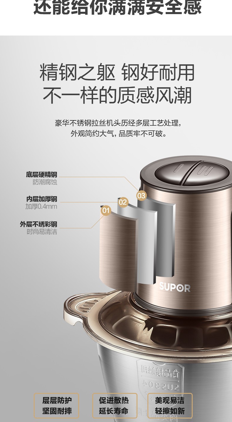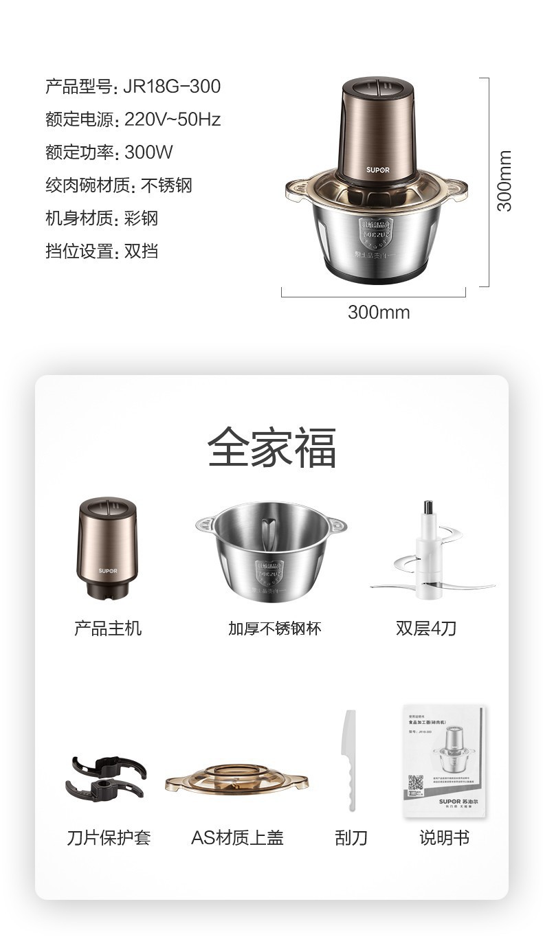 Máy Xay Thịt 2L Thép Không Gỉ Nấu Máy Tự Động Điện Gia Đình Máy Nhồi Máy Trộn JR18GS-300